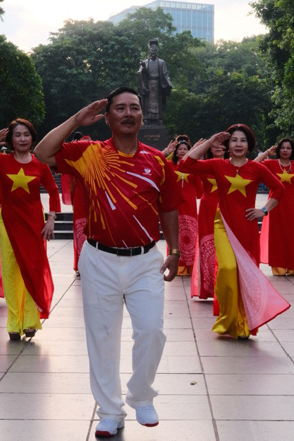 | Không chỉ giới trẻ Việt mà cả các bạn 'Tây’ cũng muốn trải nghiệm không khí luyện tập thể thao mừng Ngày Quốc khánh 2/9 của Việt Nam. |