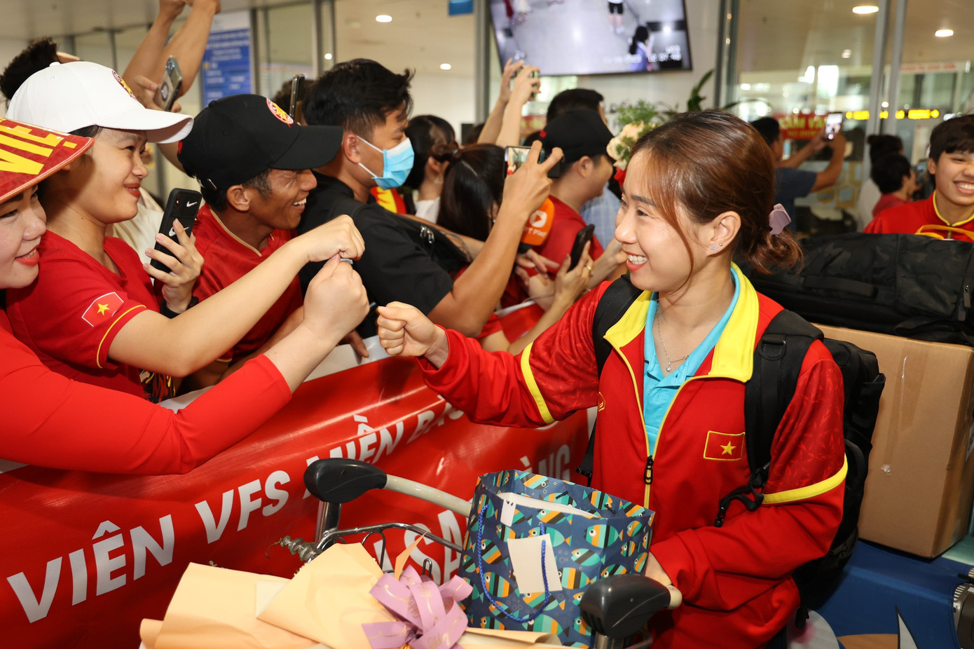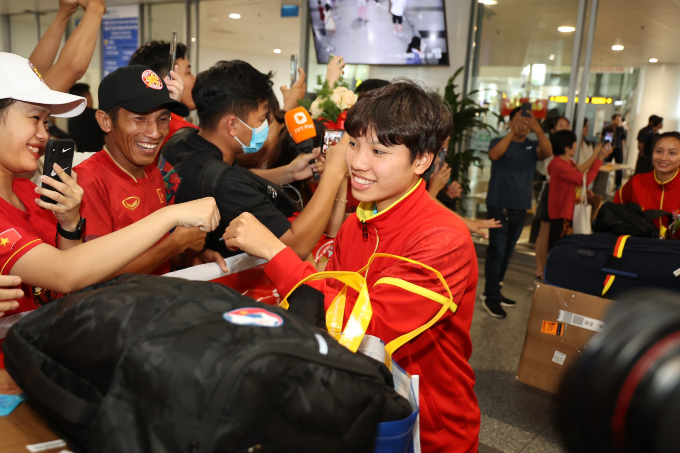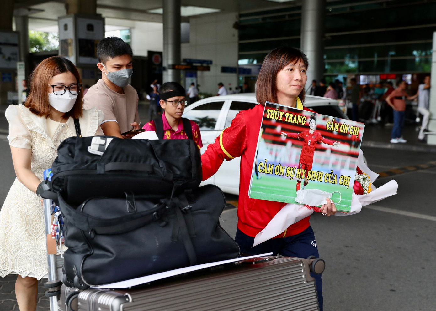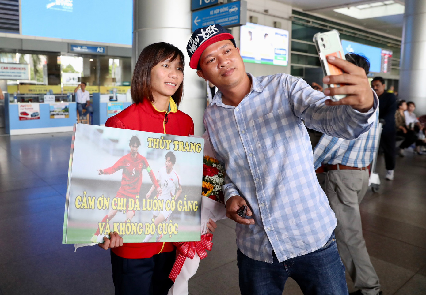 Trong số những người có mặt chờ đón các tuyển thủ có Loan, bạn thân của Trần Thị Thùy Trang. Thật đáng tiếc khi tại World Cup 2023, Thùy Trang không được ra sân.
