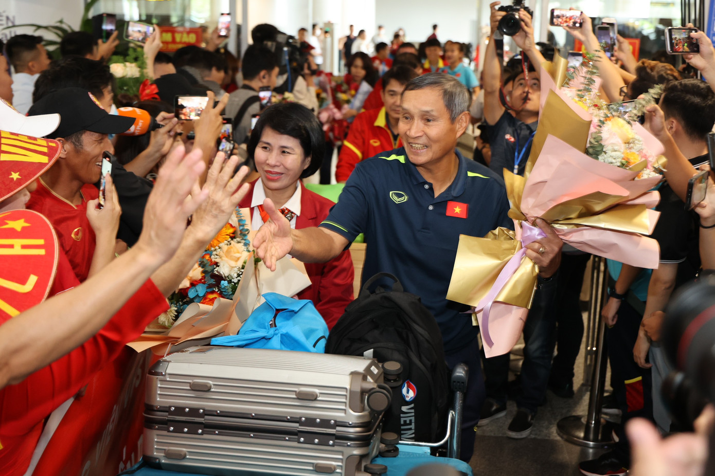 Nhóm các cầu thủ đang chơi cho Hà Nội I, Than Khoáng sản Việt Nam, Phong Phú Hà Nam và Thái Nguyên, cùng với HLV Mai Đức Chung đã có mặt tại sân bay Nội Bài,