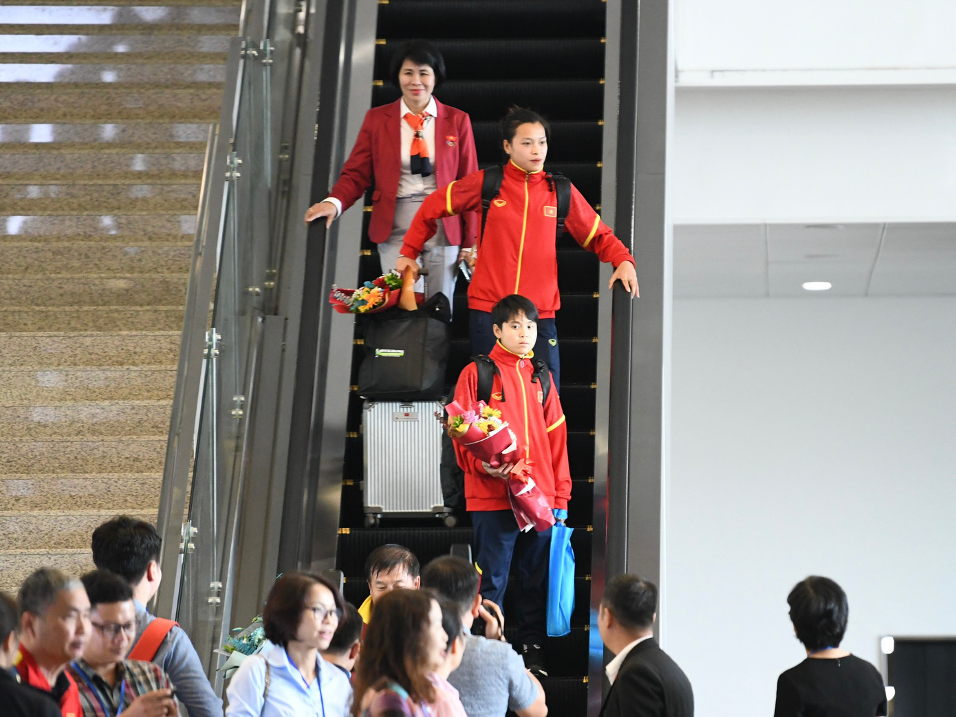 Phó Cục trưởng Cục TDTT Lê Thị Hoàng Yến chào đón Đội tuyển