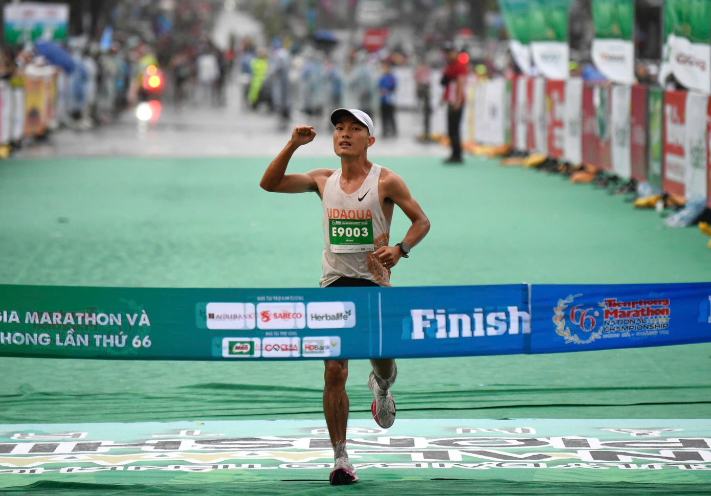 Ở cuộc đua diễn ra sáng nay tại Đông Hà (Quảng Trị), Hoàng Thị Ngọc Hoa và Hoàng Nguyên Thanh bảo vệ thành công ngôi vô địch cự ly full-marathon với thời gian lần lượt là 2 giờ 42 phút 09 và 2 giờ 32 phút 23. Theo ông Nguyễn Mạnh Hùng, để cạnh tranh Huy chương Vàng SEA Games, cự ly nam cần dưới 2 giờ 18 phút còn nữ phải dưới 2 giờ 37 phút.