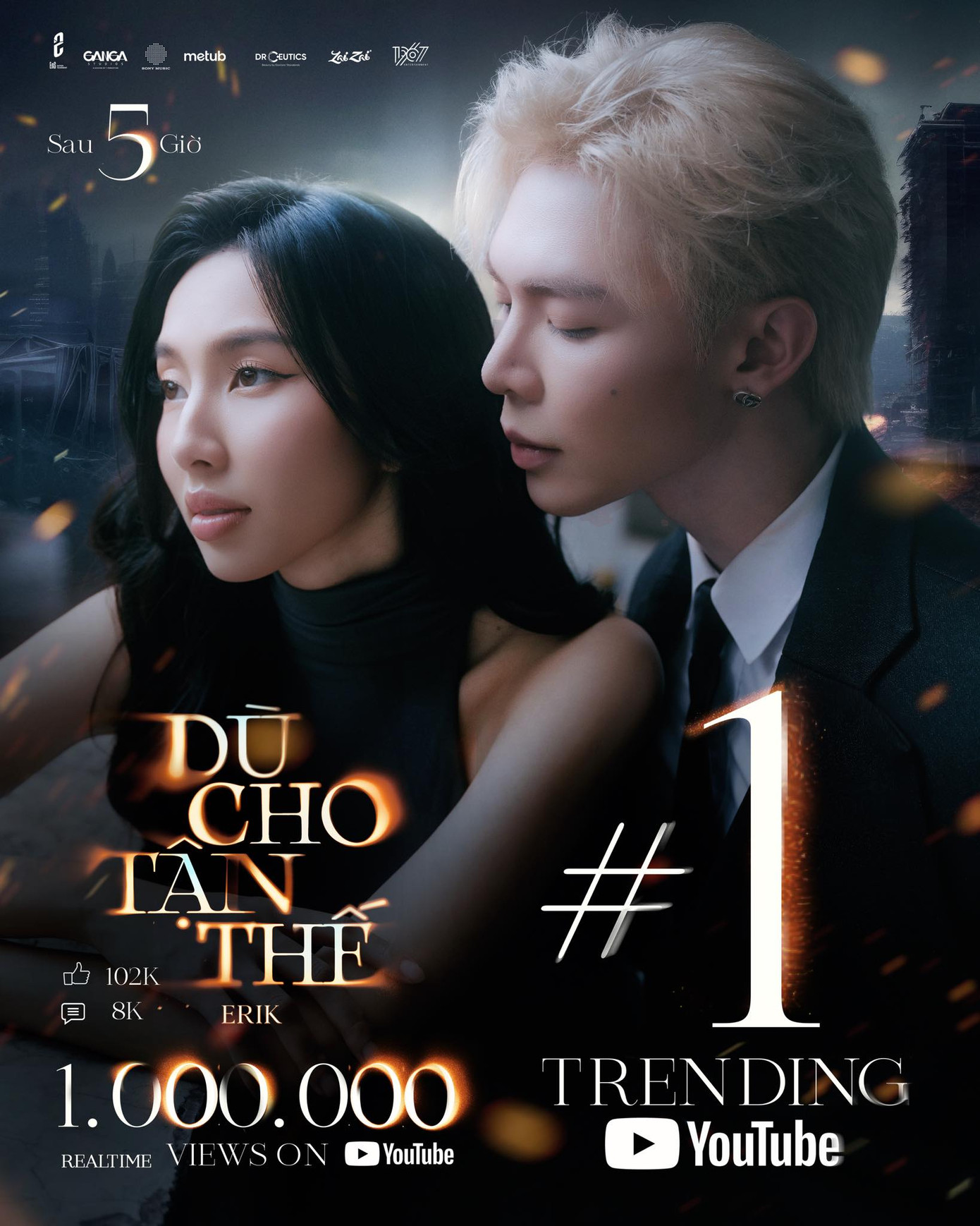 MV OST của Bộ Tứ Báo Thủ - Dù Cho Tận Thế của ERIK hiện đạt #1 Music Trending YouTube, đồng thời thu hút 1,7 triệu lượt xem sau hơn nửa ngày lên sóng. Được "chắp bút" bởi nhạc sĩ Nguyễn Phúc Thiện và đạo diễn Trấn Thành, sản phẩm mới mang đậm "màu sắc ERIK" với giai điệu Ballad trầm buồn cùng lời bài hát cực "suy".