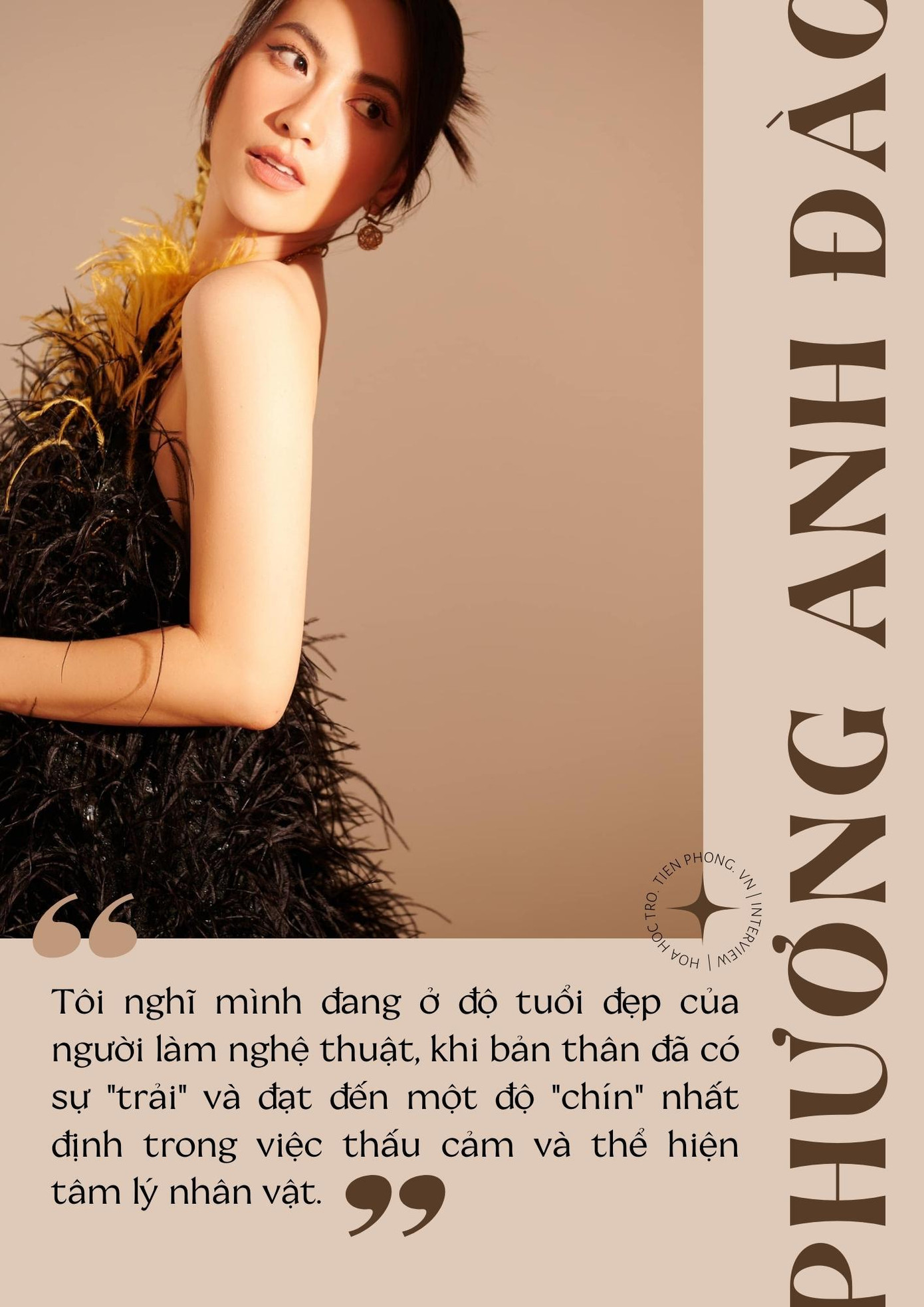 "Tôi nghĩ mình đang ở độ tuổi đẹp của người làm nghệ thuật, khi bản thân đã có sự "trải" và đạt đến một độ "chín" nhất định trong việc thấu cảm và thể hiện tâm lý nhân vật. Tôi đã không đơn thuần chỉ hướng đến tạo hình đẹp, vô tư, hồn nhiên mà muốn khán giả ghi nhận mình ở những nhân vật có "nội dung" hơn, khiến người ta càng theo dõi, càng bóc tách lại càng thấy thú vị" - Phương Anh Đào bộc bạch.