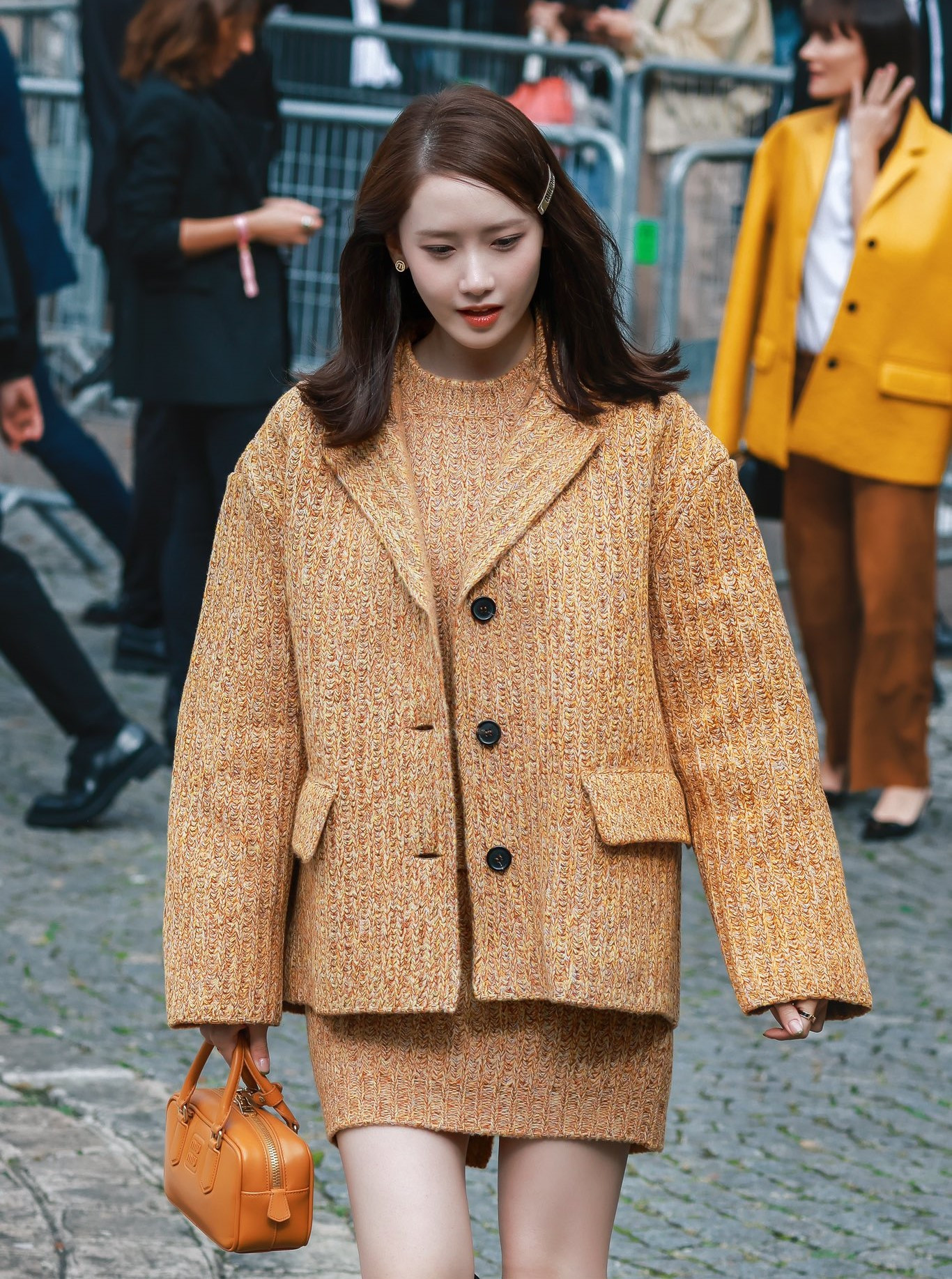 Ngay khi vừa xuất hiện, Yoona thu hút mọi ánh nhìn nhờ visual tươi trẻ với lối make-up ngọt ngào, nữ tính. Yoona diện nguyên set đồ tới từ bộ sưu tập Fall Winter 2023/2024 của hãng. Nữ thần của SNSD được khen ngợi hết lời khi kết hợp đầy tinh tế các phụ kiện trang sức và kẹp tóc, toát lên vẻ tao nhã. Outfit làm toát lên nét cổ điển nhưng không làm Yoona "bị cũ" mà trông tươi mới, trẻ trung.