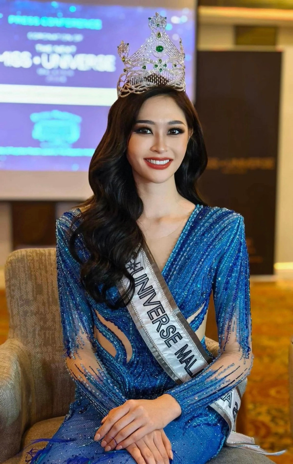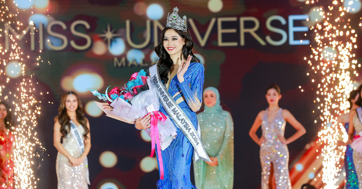 Trong khoảnh khắc đăng quang, Miss Universe Malaysia 2024 tỏa sáng rực rỡ như một nữ hoàng trong chiếc váy dạ hội màu xanh sang trọng của Nguyễn Minh Tuấn. Với phom đuôi cá tôn lên đường cong quyến rũ của người đẹp, kết hợp phần vai ngang quyền lực, thiết kế này không chỉ là trang phục mà còn là biểu tượng của sự quyền lực và thanh lịch.