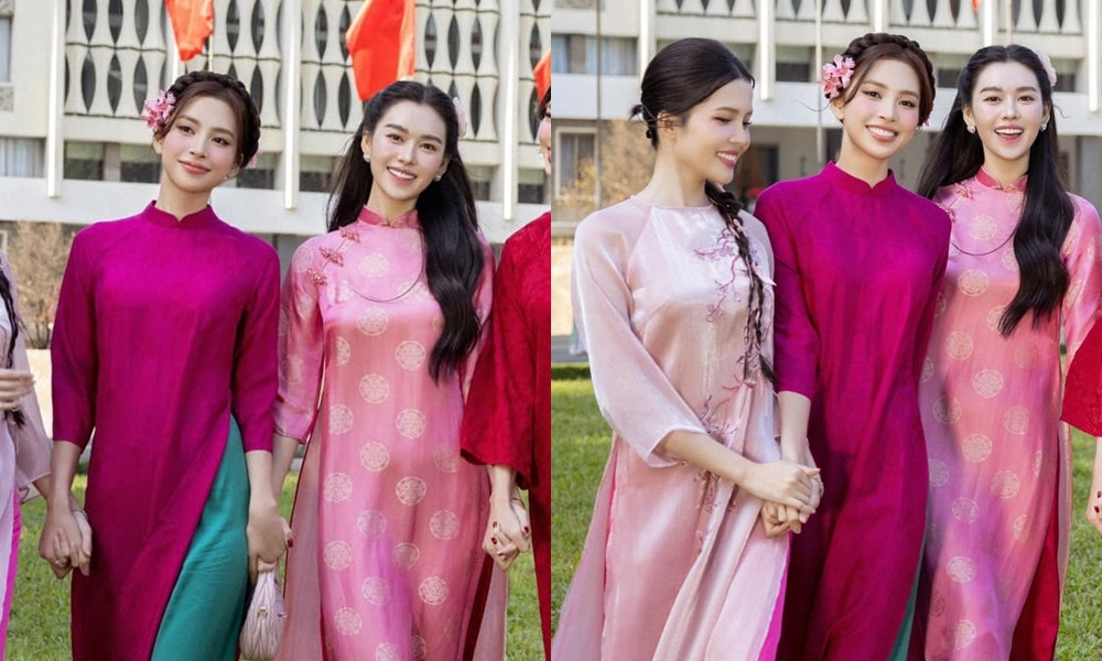 Mới đây, nhóm bạn thân gồm toàn nàng hậu quen thuộc như Hoa hậu Tiểu Vy, Thùy Tiên, Á hậu Diễm Trang, Tường San đã rủ nhau đi chụp ảnh áo dài đón Tết. Hoa hậu Tiểu Vy nổi bật với phần tóc tết đuôi sam được quấn tròn quanh đầu, nhìn vừa kiêu sa vừa nền nã.
