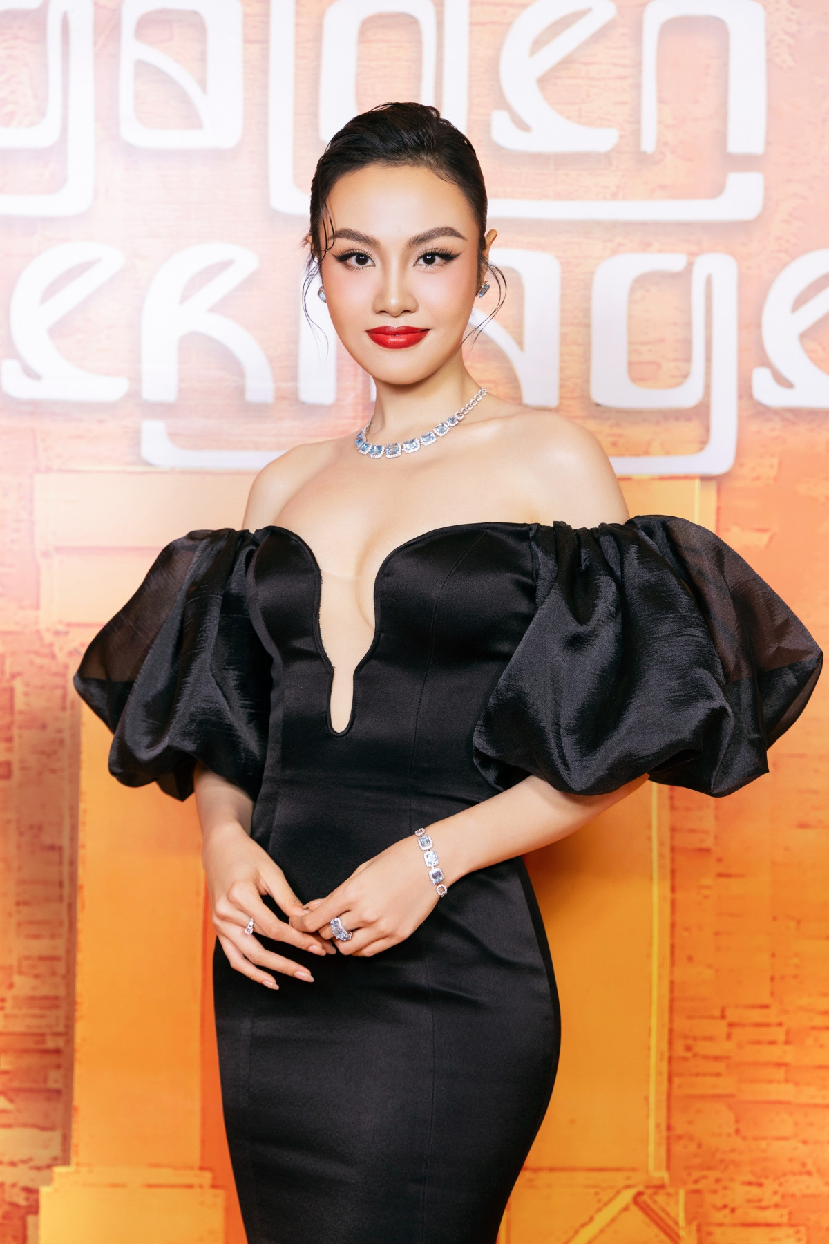 Thảm đỏ của Golden Heritage có sự góp mặt của nhiều người đẹp showbiz Việt. Dàn Hoa - Á hậu Hoa hậu trở thành tâm điểm chú ý trên thảm đỏ với loạt váy áo và nhan sắc ấn tượng: