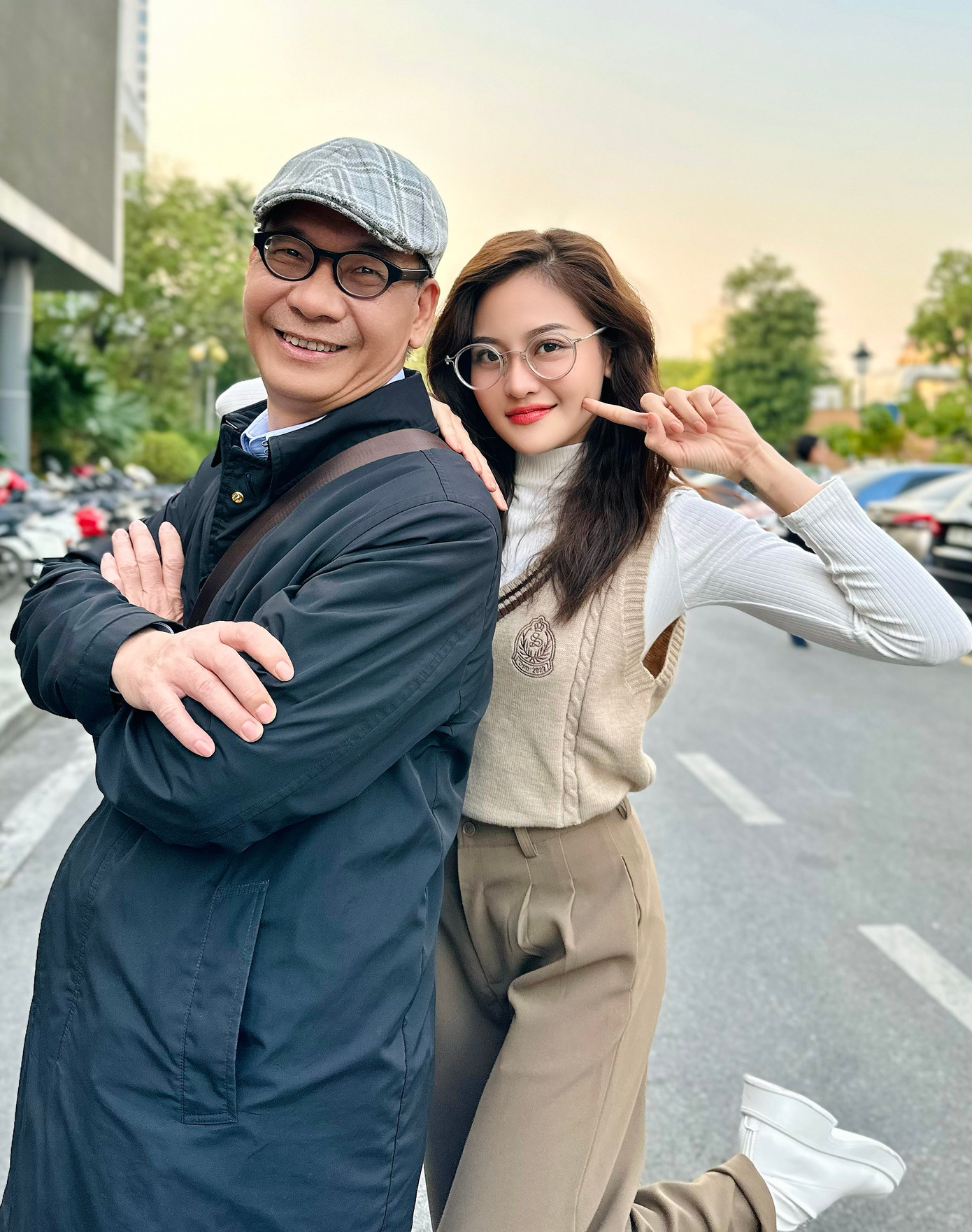 Ngoài chuyện trò, vui đùa trên phim trường, Thùy Anh cùng “bố” Khuê, “mẹ” Oanh giữ tương tác liên tục trên mạng xã hội. Cô gọi cặp nghệ sĩ là "bố", "mẹ" từ phim ra tới ngoài đời, ngay cả khi không quay. Thùy Anh cho hay đó là thói quen của cô trong nhiều năm làm nghề.