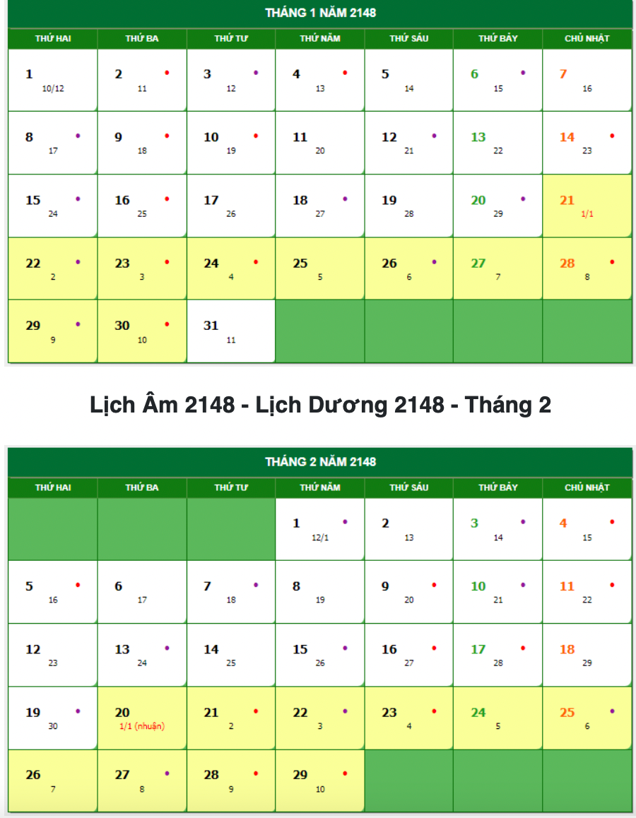 Tra cứu ở một vài website của Trung Quốc thì thấy rằng đúng là năm 2148 được xác định là năm nhuận Âm lịch, và đúng là nếu không có sai số nào xuất hiện so với tính toán thì tháng Giêng năm đó sẽ nhuận (có 2 tháng Giêng).