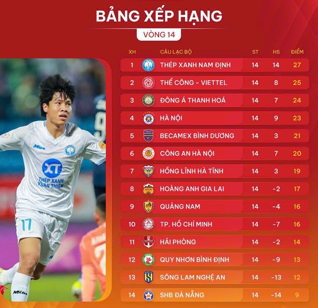 Bảng xếp hạng LPBank V-League 2024/25 mới nhất