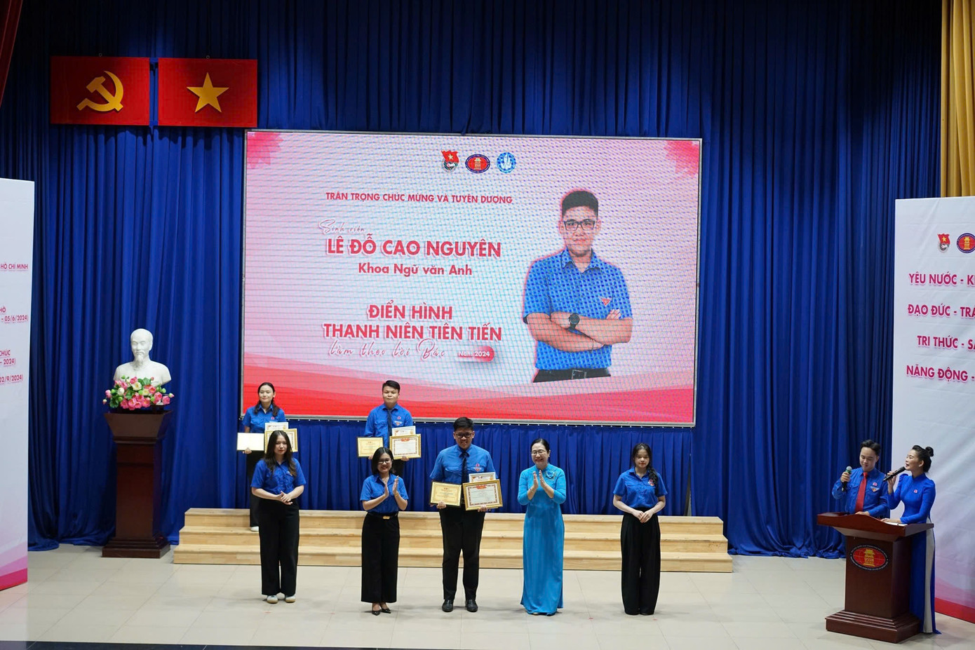 | Cao Nguyên được tuyên dương và nhận bằng khen từ Đoàn trường. |