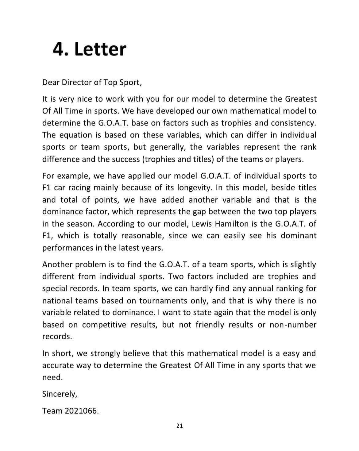 Cùng với các đội đến từ nhiều nước trên thế giới, đội tuyển Việt Nam đã tập tháo gỡ những nút thắt để giải yêu cầu đề bài như: Xây dựng mô hình toán học để xác định người xuất sắc nhất gắn với môn thể thao cá nhân; viết bức thư mô tả về đội hình của bạn và ví dụ của bạn về G.O.A.T. cho môn thể thao cá nhân đã chọn của bạn...