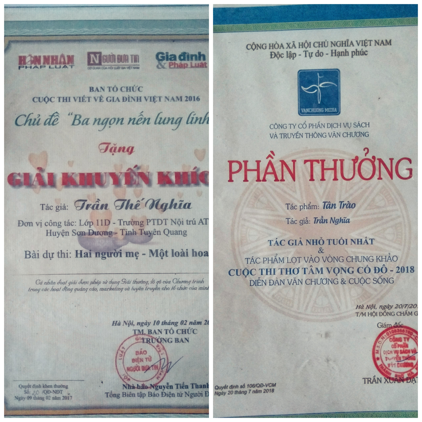 Ngay từ khi còn là học sinh, mình đã bén duyên với báo chí. Mình liên tiếp tham gia các cuộc thi viết lách và có được những giải thưởng đầu tiên. Bên cạnh đó, mình rất đam mê với môn thể thao bóng chuyền. Năm 2019, mình được một đội bóng của địa phương gọi tập trung thi đấu nhưng vì lý do việc học nên mình đã bỏ lỡ cơ hội này.