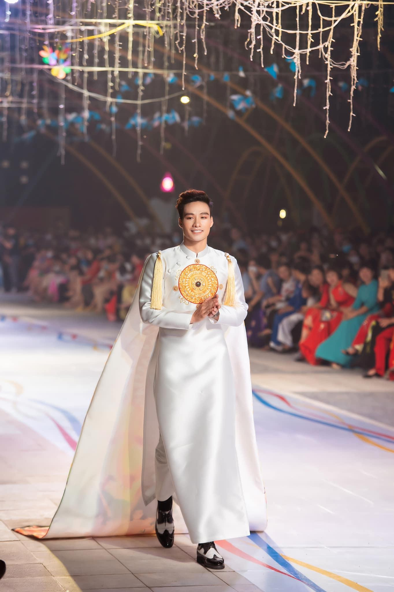Trong bộ suit với tone trắng và áo choàng rộng, Đạt Kyo khéo léo khoe trọn thân hình "cực phẩm". Những điểm vàng trên body kết hợp với chiều cao 1m84 lý tưởng, cùng phong cách trình diễn thời trang chuyên nghiệp đầy tự tin đã giúp Đạt Kyo chinh phục các thành viên ban giám khảo.