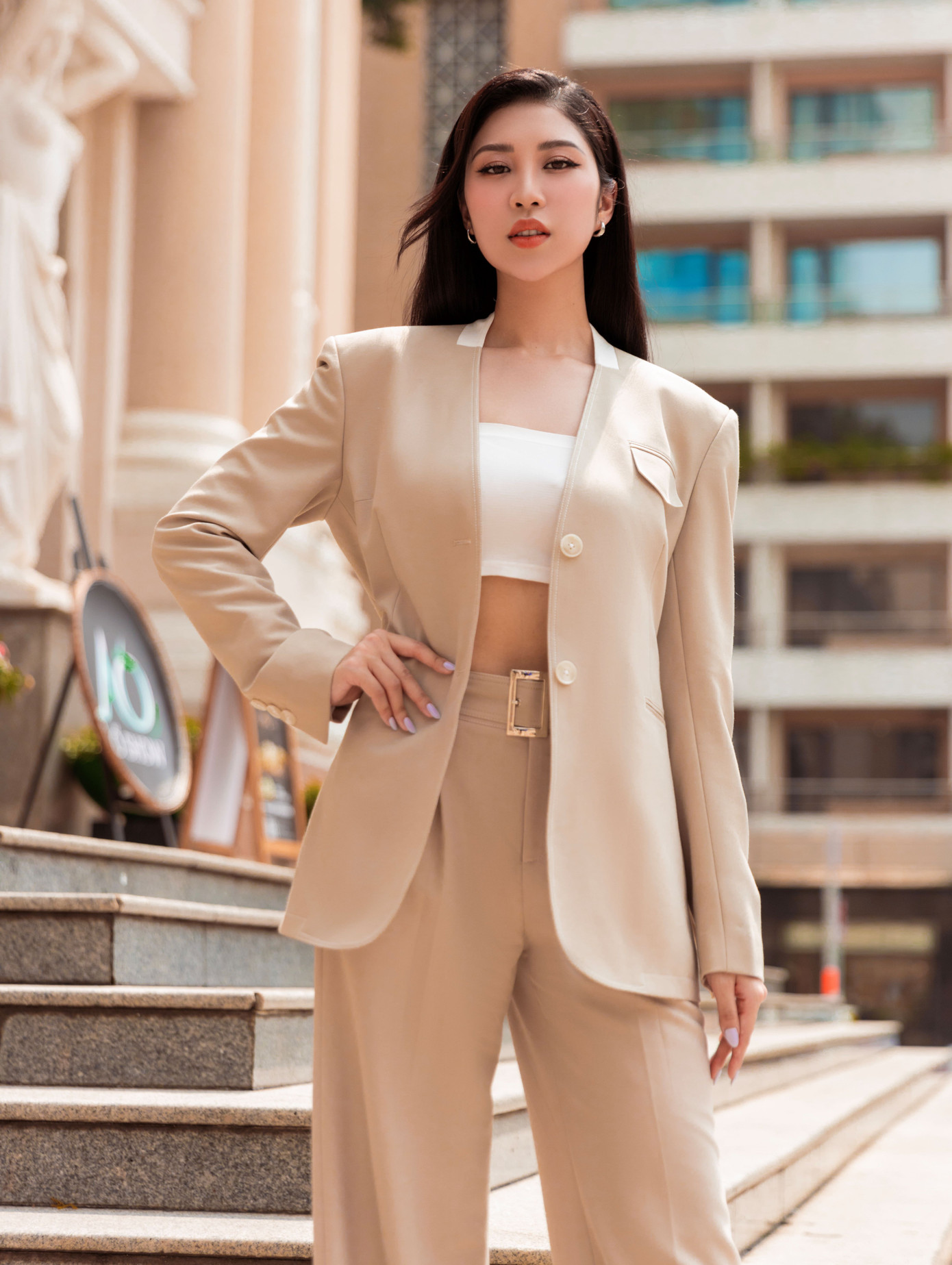Trong video tự giới thiệu, bắt đầu với những địa điểm nổi bật của TP. HCM như chợ Bến Thành và Nhà hát Thành phố, Miss Earth Vietnam 2023 Lan Anh xuất hiện trong trang phục vét năng động, tự tin chia sẻ về bản thân bằng tiếng Anh lưu loát. Lan Anh cho biết, cô sinh ra tại TP. HCM, Việt Nam - một đất nước xinh đẹp với nền văn hóa và lịch sử lâu đời, cùng với thiên nhiên tươi đẹp, "rừng vàng biển bạc".