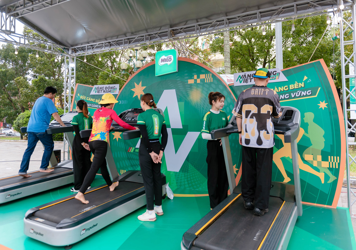 | Khu vực trải nghiệm thể lực “Năng Động Việt Nam” của Nestlé MILO tại Giải Tiền Phong Marathon 2025, nơi người tham dự có thể tham gia thử thách chạy bộ, kiểm tra sức bền và nhận quà tặng từ nhãn hàng. |