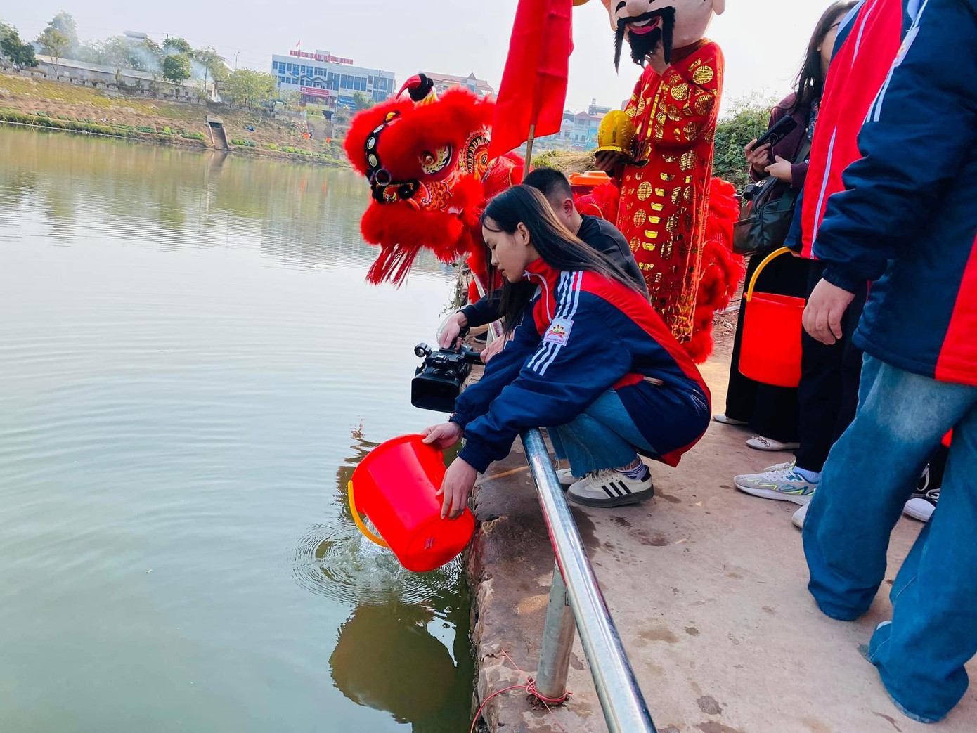 | Người dân và giới trẻ xứ Lạng thả cá an toàn, giữ gìn vệ sinh môi trường. |