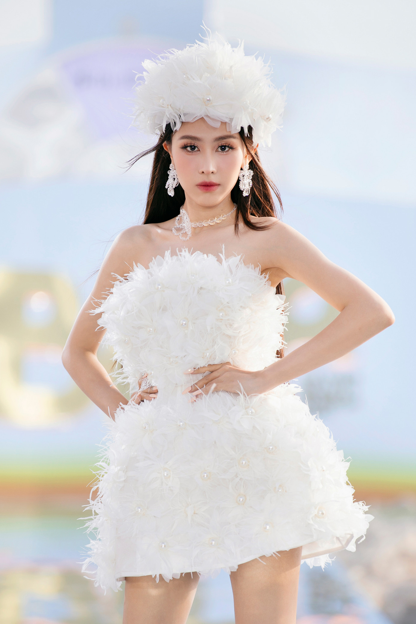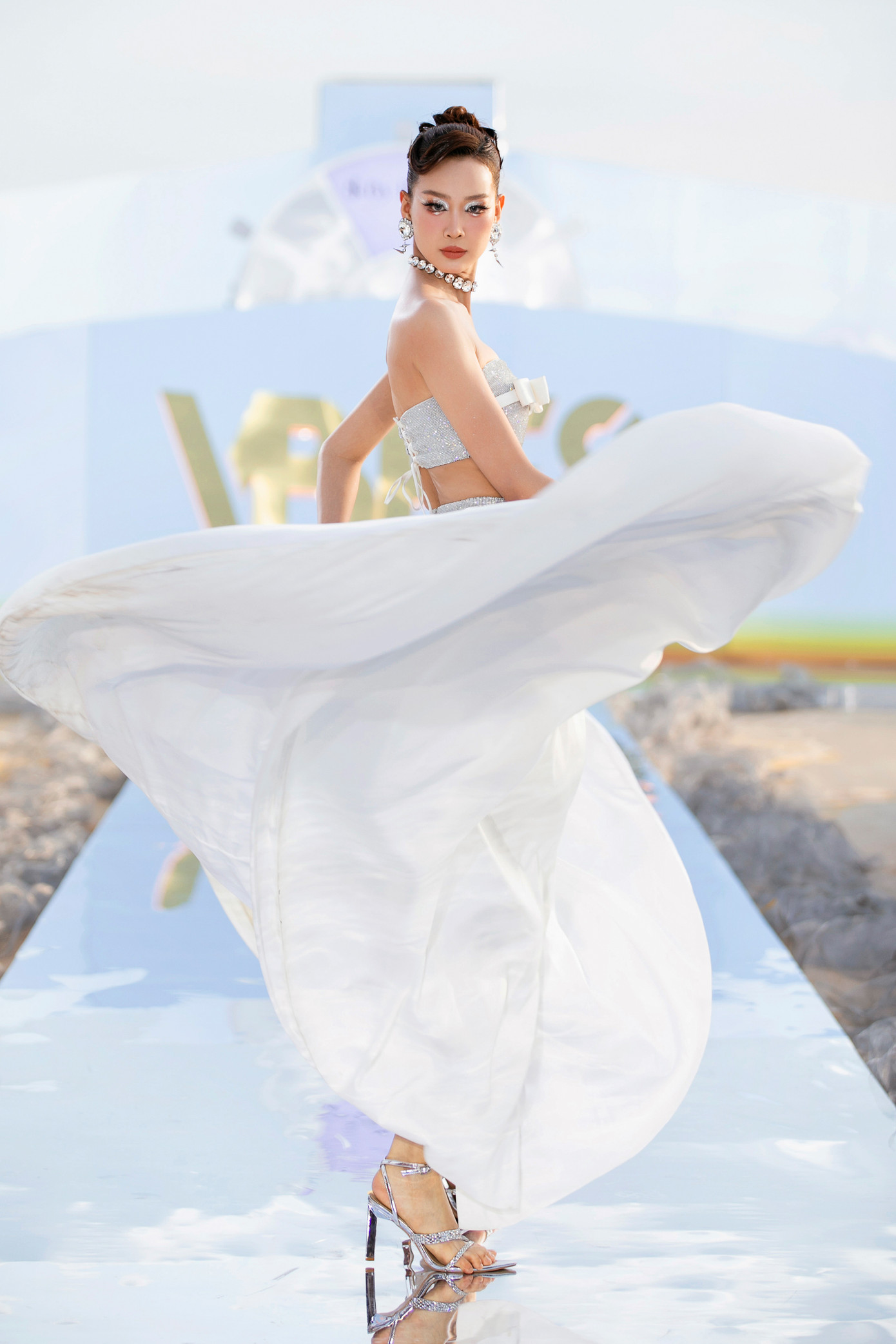 Bộ đôi Miss Intercontinental gồm Á hậu Ngọc Hằng và Hoa hậu Bảo Ngọc cùng đọ sắc, đảm nhận hai vị trí quan trọng là first face và vedette của BST Glamour by Jenny. Á hậu Ngọc Hằng gây ấn tượng với sải bước khỏe khoắn, năng lượng. Bên cạnh đó, khả năng trình diễn cuốn hút của nữ ca sĩ gen Z cũng gây chú ý.