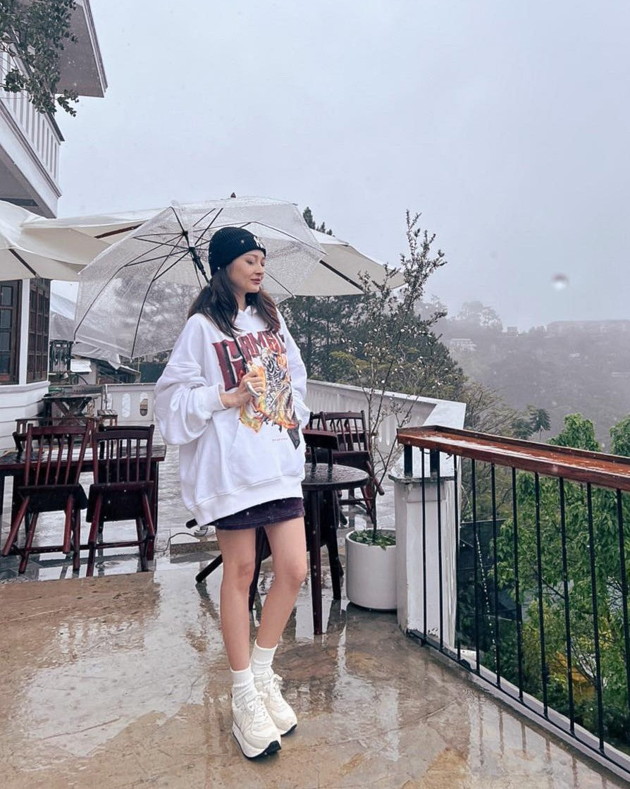 Thời gian này, nữ ca sĩ ưu tiên cho những mẫu áo nỉ rộng rãi. Khi ấy, netizen cứ ngỡ Bảo Anh đổi gu sang phong cách trẻ trung, khỏe khoắn nhưng bây giờ, mọi người đã hiểu cô muốn giữ bí mật chuyện đang mang thai.