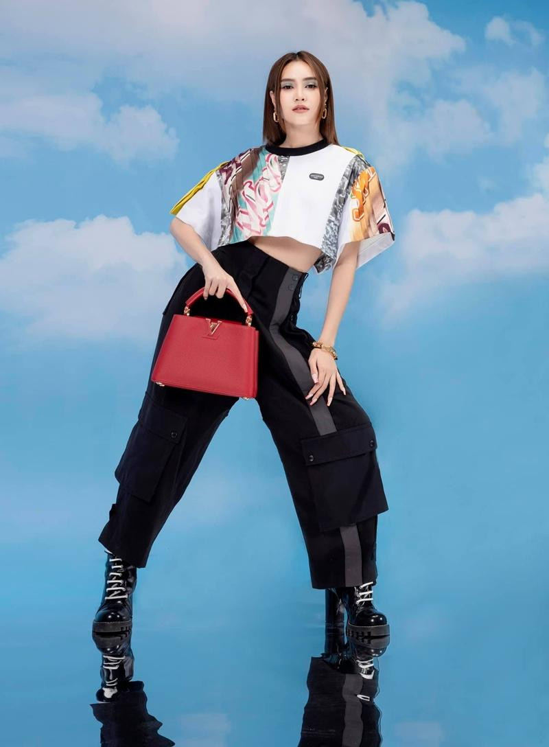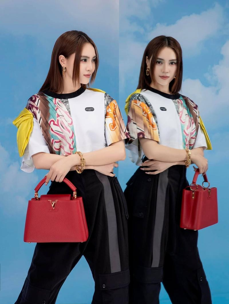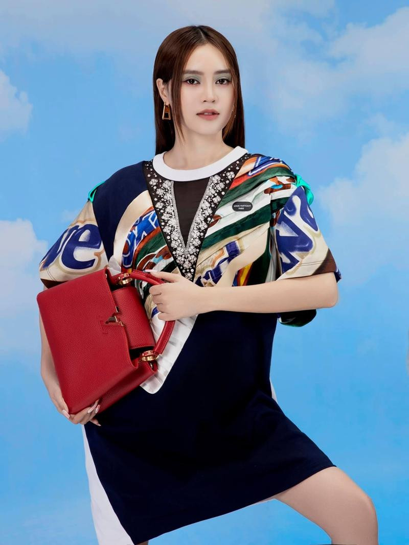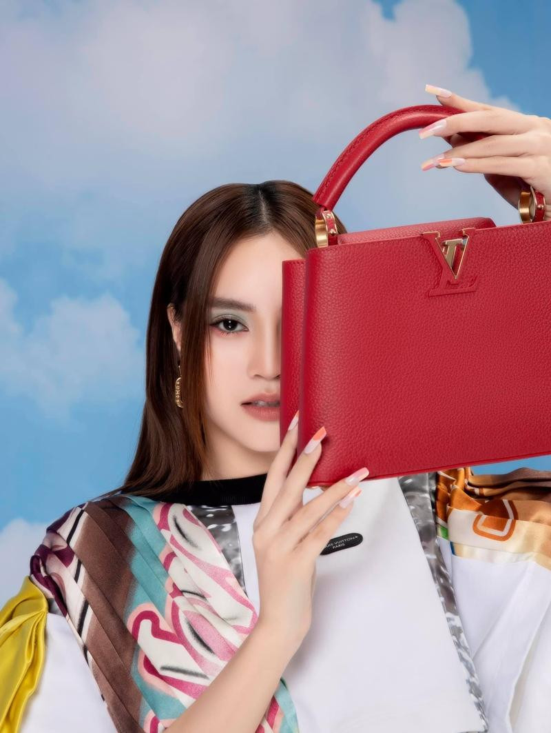 Ở Việt Nam, nữ diễn viên Ninh Dương Lan Ngọc cũng mới tung bộ ảnh thời trang chụp cùng mẫu túi Capucines màu đỏ vô cùng nổi bật. Cô diện trang phục nằm trong BST mới nhất của LV, để tóc xõa kiểu “hai dâu” đơn giản, trang điểm rất kỹ.