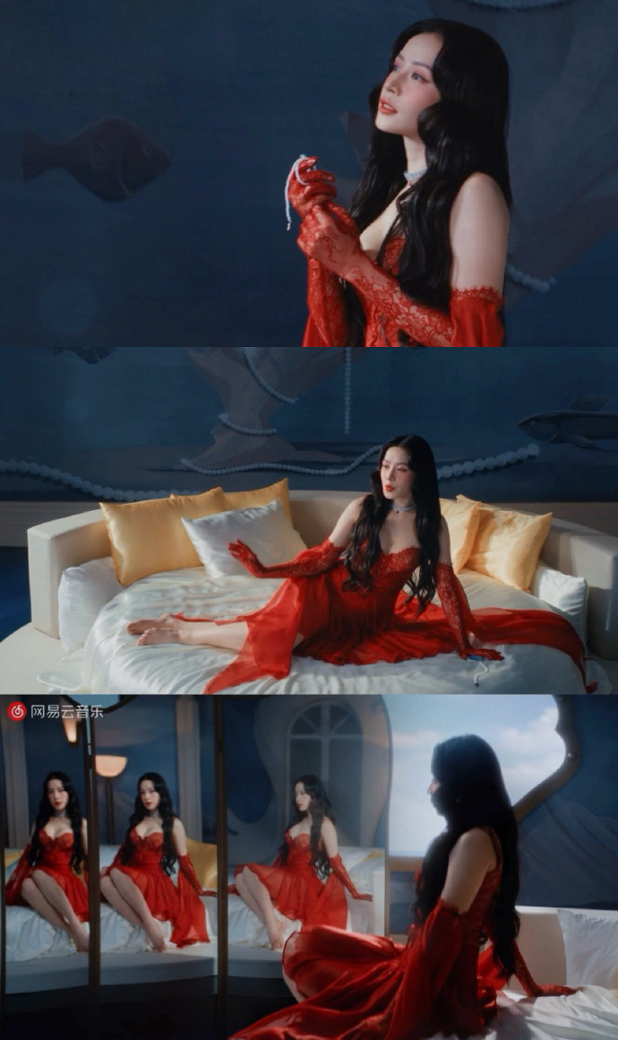 Chi Pu có tổng cộng 7 tạo hình trong MV. Nhưng visual trong chiếc váy đỏ của cô khiến nhiều người mê mệt nhất. Các fan Trung cũng chọn outfit này và những set quay trong trang phục này là đỉnh nhất MV.