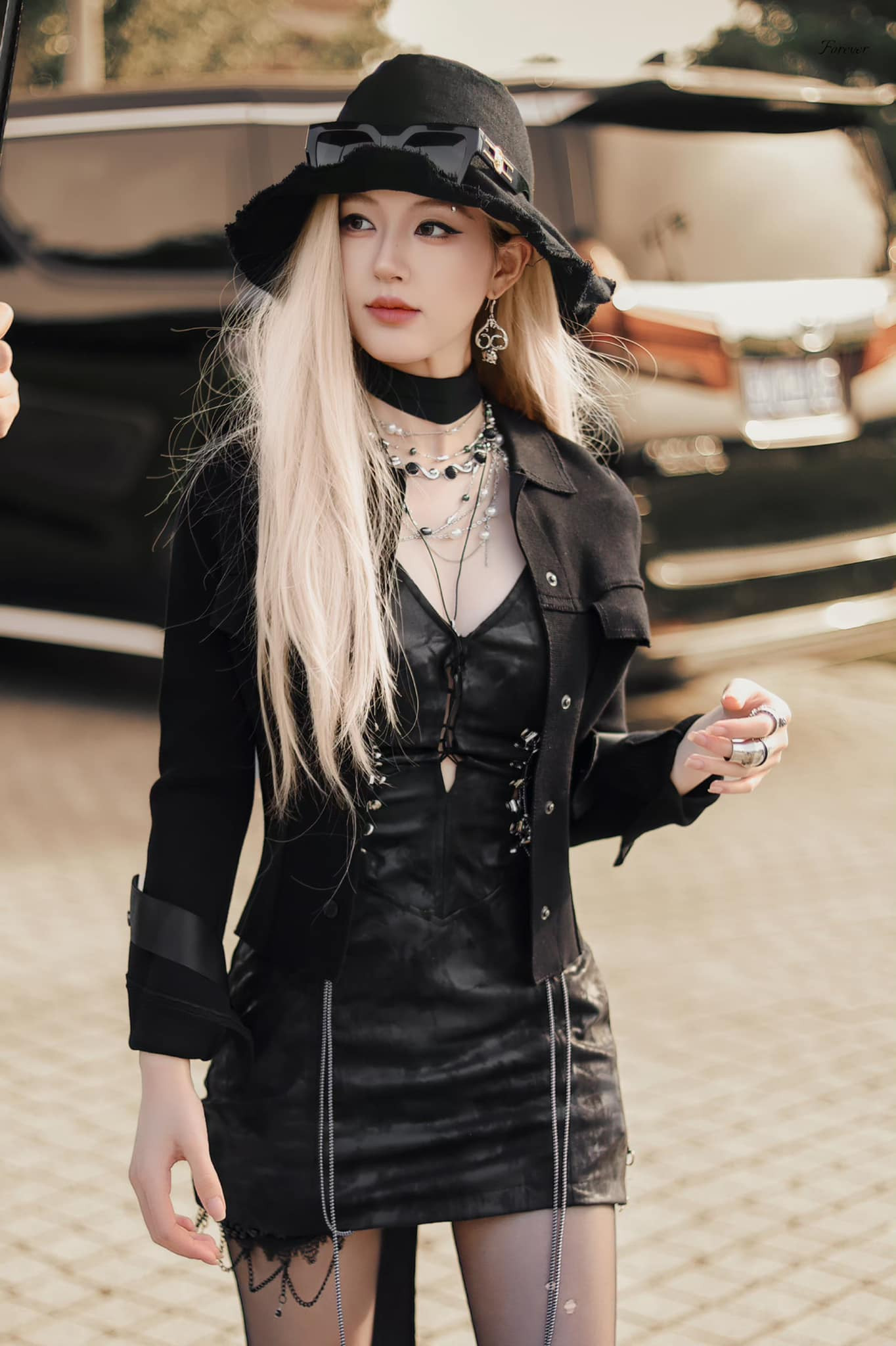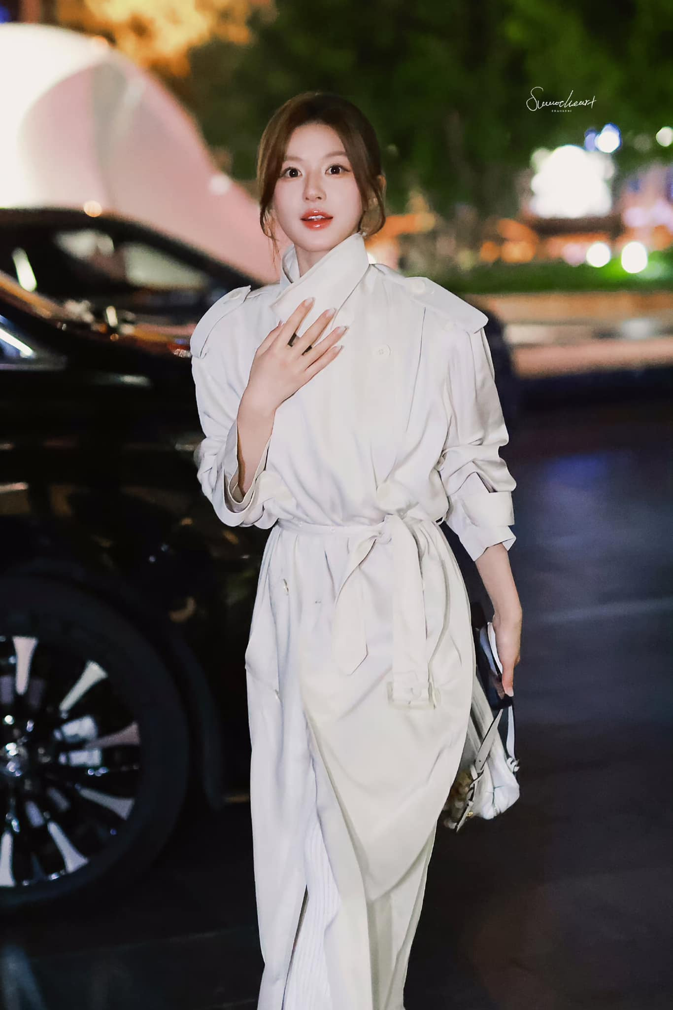 | Ở một tạo hình khác, sao nữ khoe sắc vóc mảnh mai trong mẫu đầm tông màu be thuộc BST Thu Đông 2024 của nhà mốt NICOLE FELICIA. |