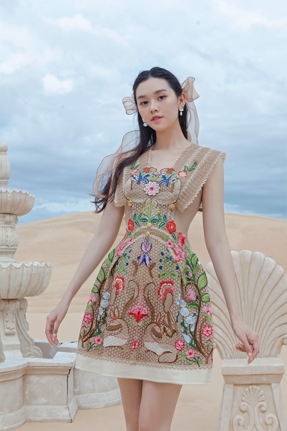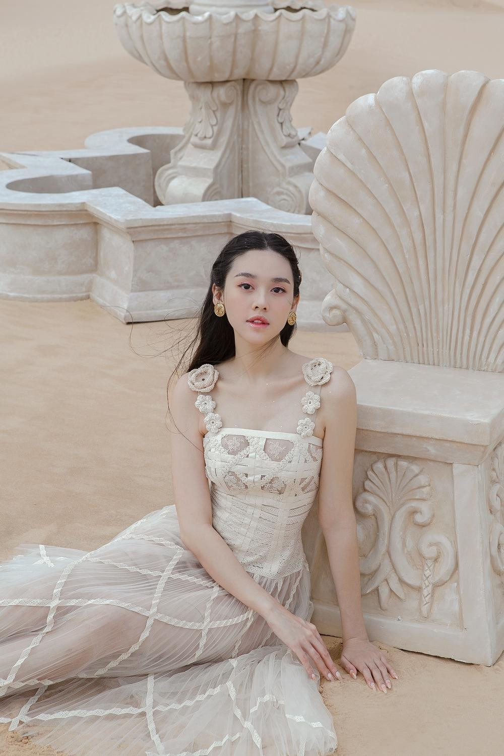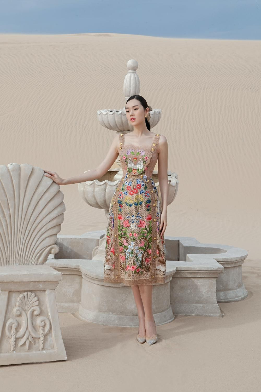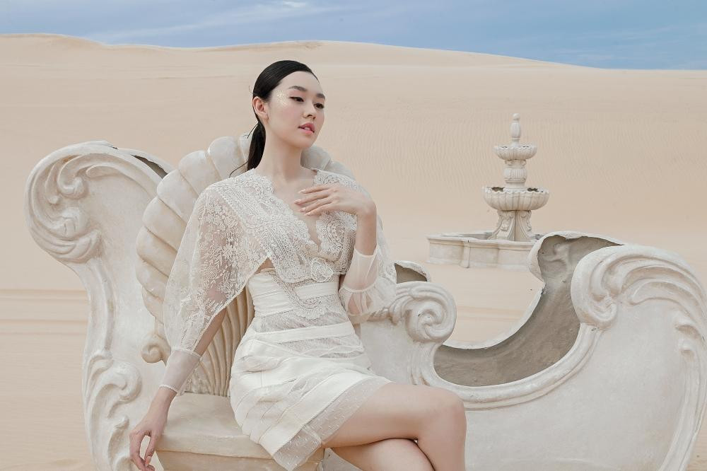HHTO - Á hậu 2 Miss World Vietnam 2019 Tường San khoe sắc vóc yêu kiều trong bộ ảnh chụp tại đồi cát với những thiết kế đầm thanh lịch. Nàng hậu trang điểm nhẹ nhàng, để kiểu tóc buộc thấp đơn giản, hệt như nữ thần trong một bức tranh thần thoại.