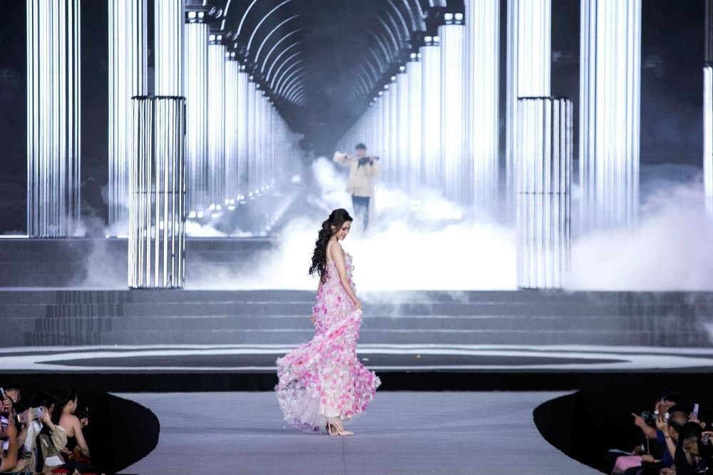 Màn trình diễn của người đẹp mang đậm phong cách nàng thơ, mong manh yêu kiều như một “nàng tiên hoa”.