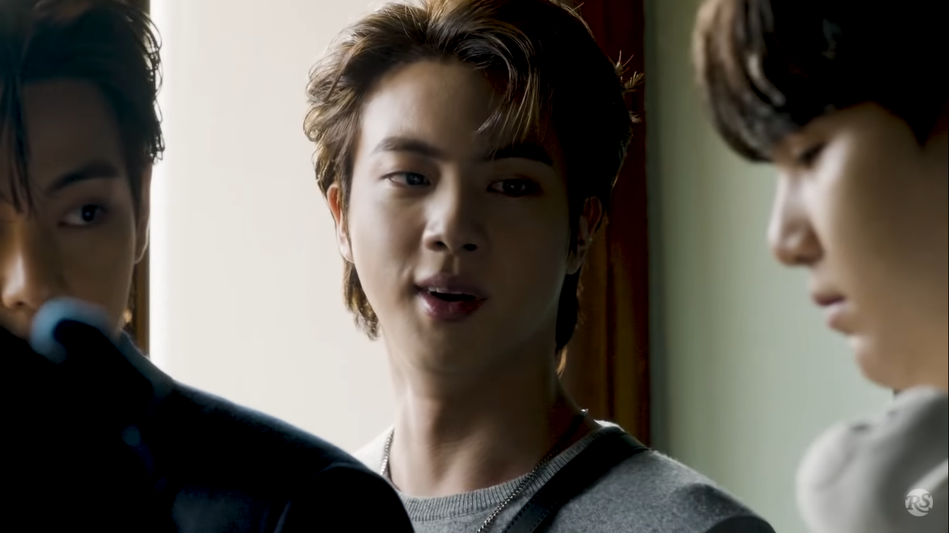 | Khoảnh khắc bùng nổ visual của Jin - V - Jung Kook dù chỉ đứng cạnh nhau vài giây trong video. |