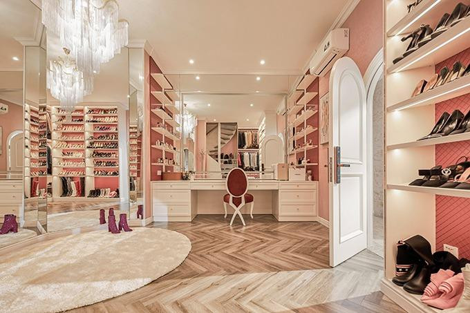 Hương Giang cho biết bản thân là người ngại ra ngoài, thích mời bạn bè đến nhà nên muốn tạo không gian thoải mái nhất. Diện tích căn nhà lớn nên cô sắm thang máy di chuyển giữa các tầng. Nữ ca sĩ đầu tư phòng chứa đồ hiệu hoành tráng không thua một showroom thời trang. Tổng chi phí xây dựng, thiết kế, thi công của biệt thự hơn 10 tỷ đồng.