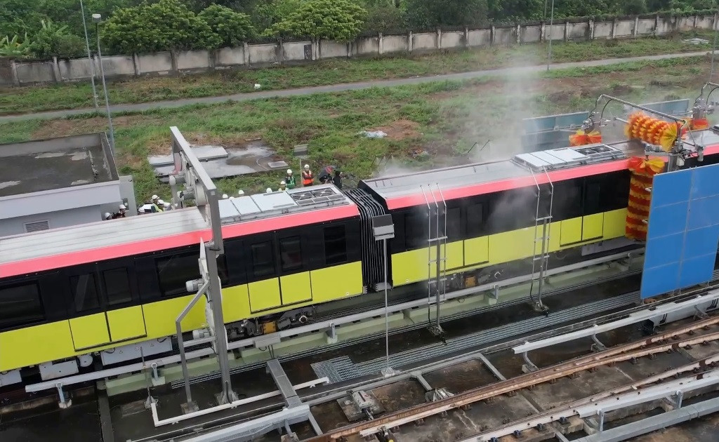 TPO - Sau 1 tuần vận hành thử nghiệm để chuẩn bị đưa vào hoạt động từ tháng 7 tới, tàu metro Nhổn - ga Hà Nội đã hoàn thành 7 kịch bản đề ra, trong đó có hệ thống rửa tàu tự động tại khu depot.