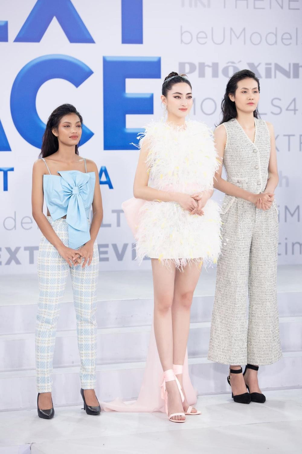 Trong tập mới nhất của The Next Face Vietnam, Hoa hậu Lương Thùy Linh xuất hiện với thiết kế này, khoe trọn đôi chân dài 1m22 cực phẩm.