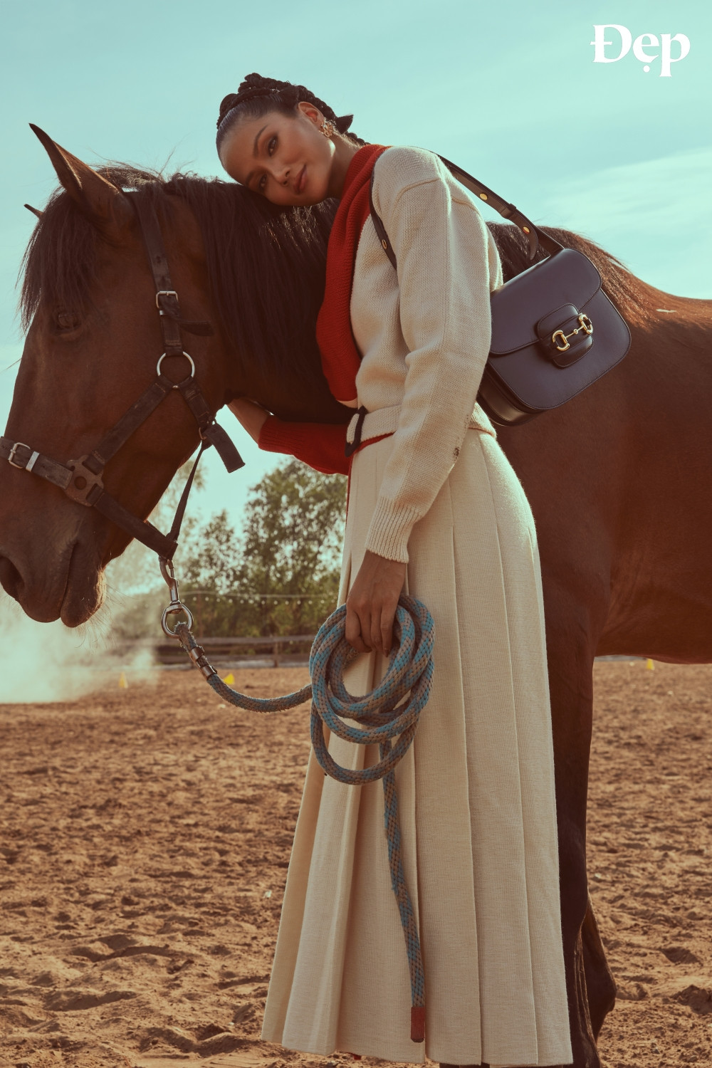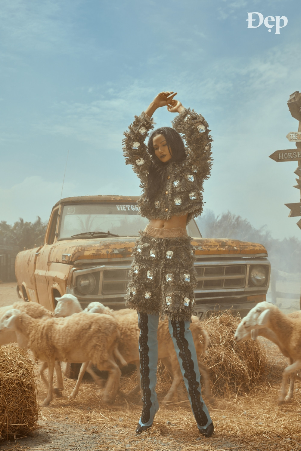 Trong những thiết kế sang trọng, nàng hậu thần thái hóa thân thành cô gái du mục, thể hiện bản lĩnh và khát vọng độc lập trên con đường cuộc đời. “Mỗi chúng ta là một bản thể duy nhất và vẻ đẹp thực sự sẽ khởi phát vào giây phút ta sống là chính mình” là thông điệp mà ê-kíp muốn truyền tải.