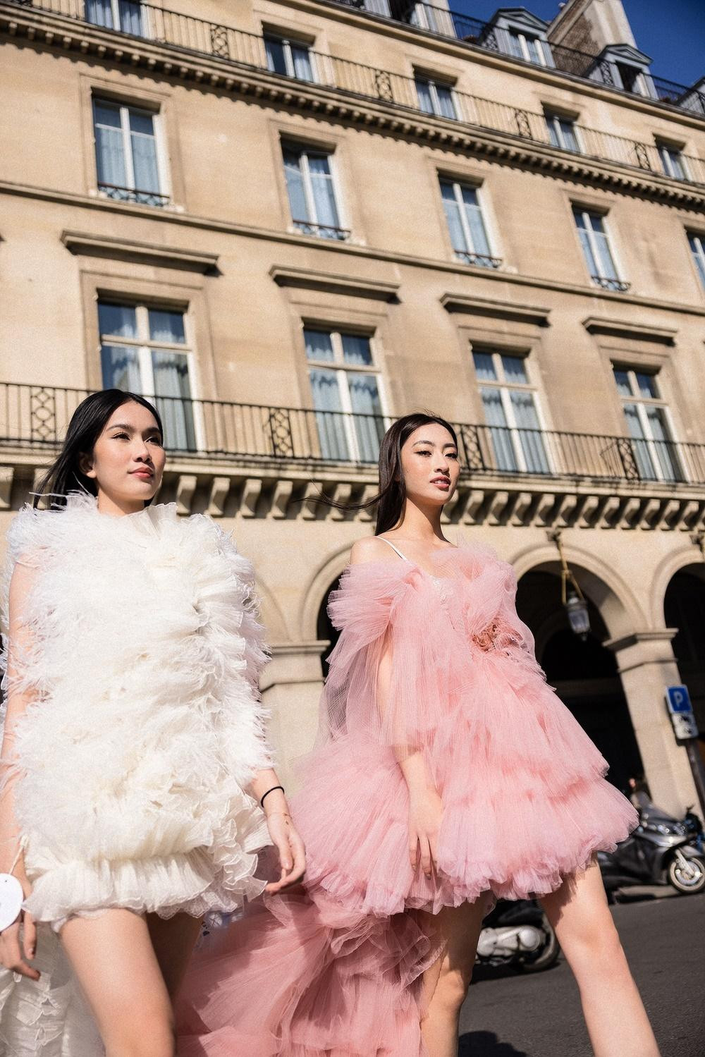 Hai nàng hậu Gen Z đọ sắc xinh đẹp trên đường phố Paris, nổi bật trong những thiết kế mới nhất được lấy cảm hứng từ vải tuyn, ren Pháp và macramé, cùng bảng màu sắc thanh lịch vàng, đen, trắng, hồng, mang đến những bộ trang phục sáng tạo đột phá, độc đáo, không kém phần quyến rũ.