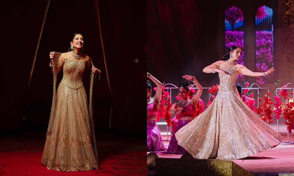 Cô dâu Radhika Merchant là vũ công chuyên nghiệp, từng dành 8 năm học múa cổ truyền tại Học viện Shree Nibla Arts ở Mumbai. Các bữa tiệc của Ấn Độ không thể thiếu những màn nhảy múa sôi động nên cô dâu cũng chọn nhiều trang phục thuận tiện để thực hiện các điệu nhảy.