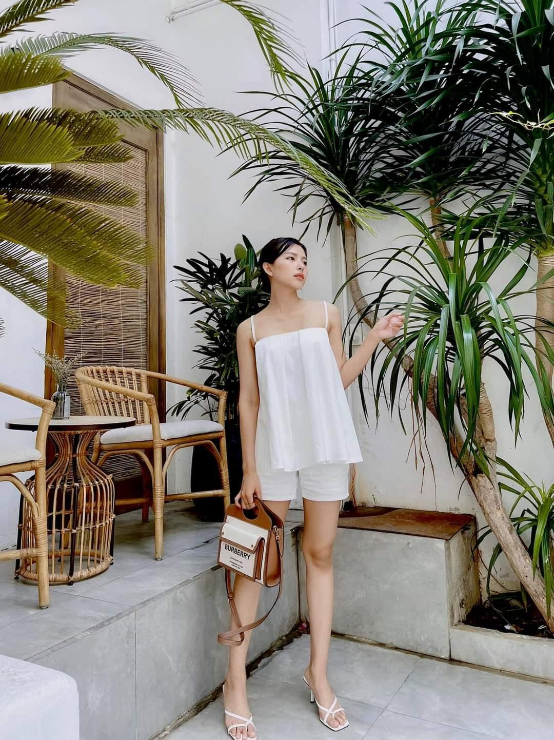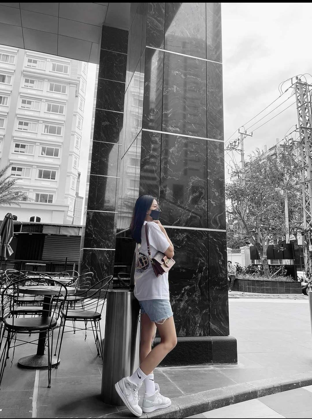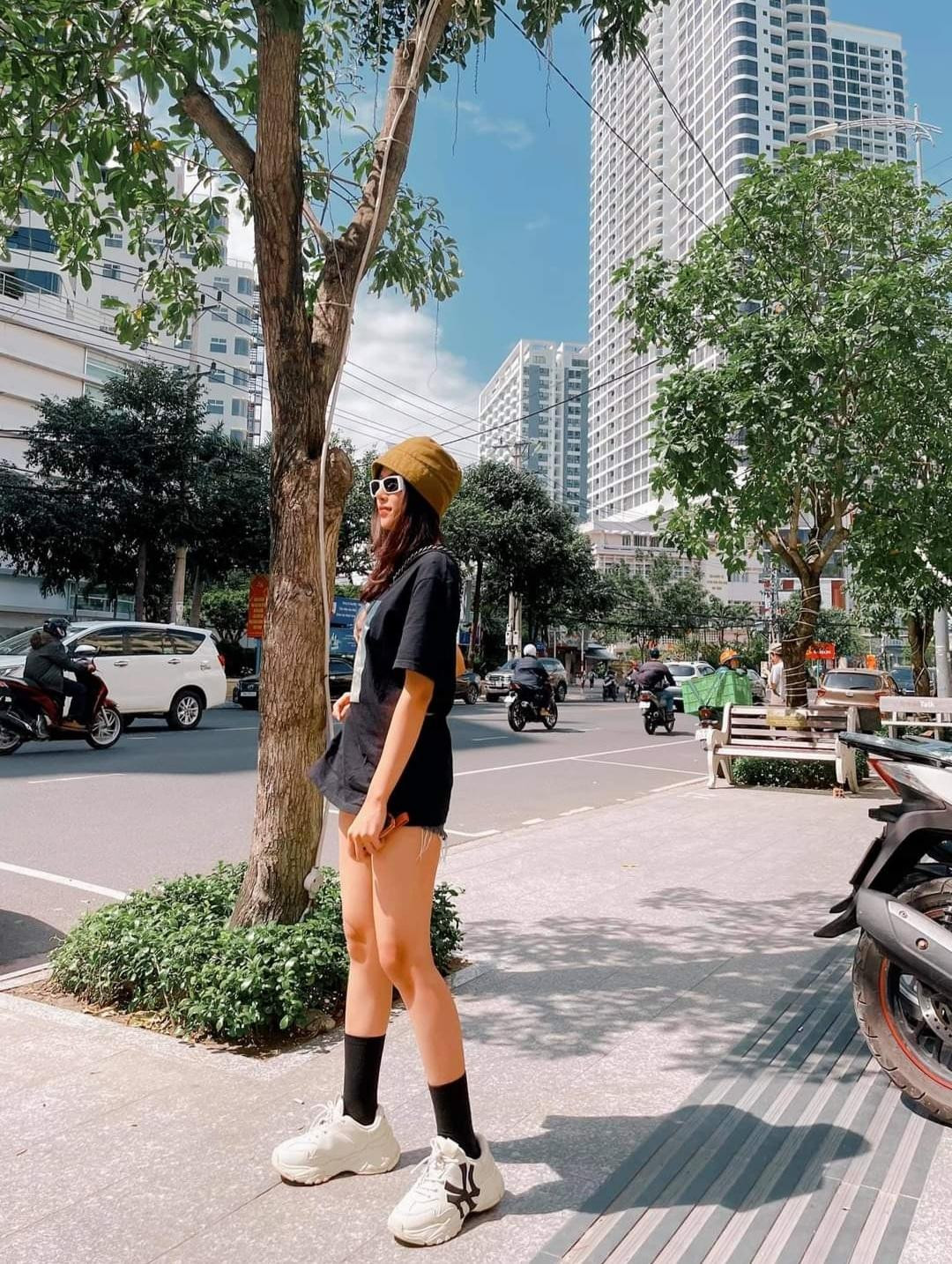 Khánh Vy dễ dàng cân hết các concept từ nữ tính, dịu dàng đến thể thao, năng động, các kiểu trang phục yêu thích của cô nàng là áo phông, quần soóc, giày sneaker,...