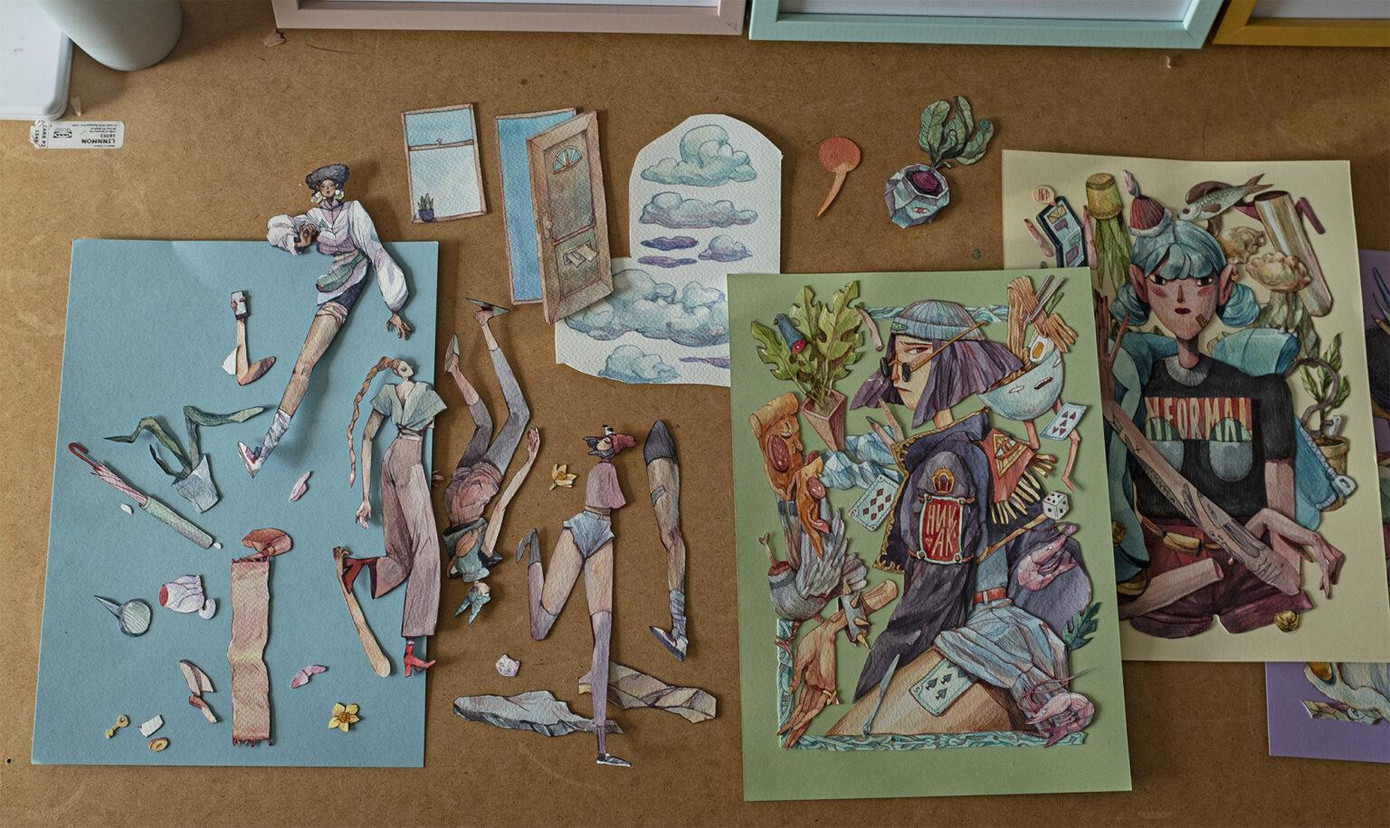 Để tạo ra một bức tranh biết “rung rinh”, trước tiên Marija Tiurina phác thảo và vẽ từng nhân vật, vật thể bằng tay, sau đó tỉ mẩn tô màu nước.