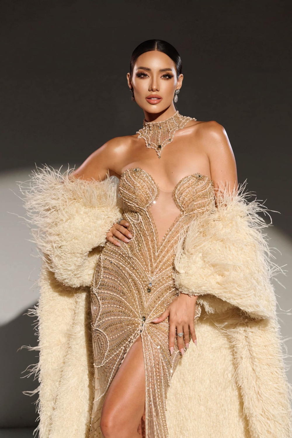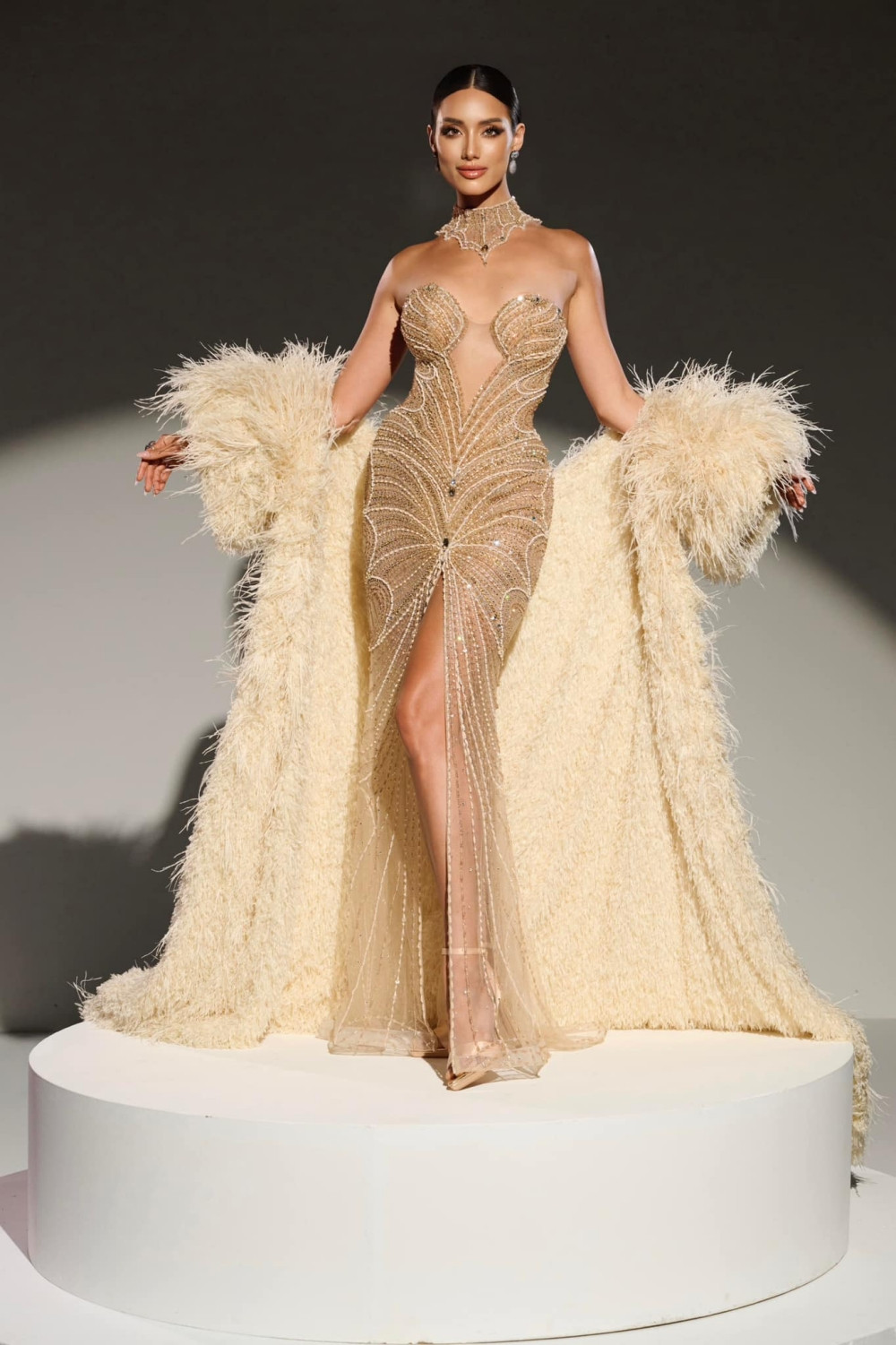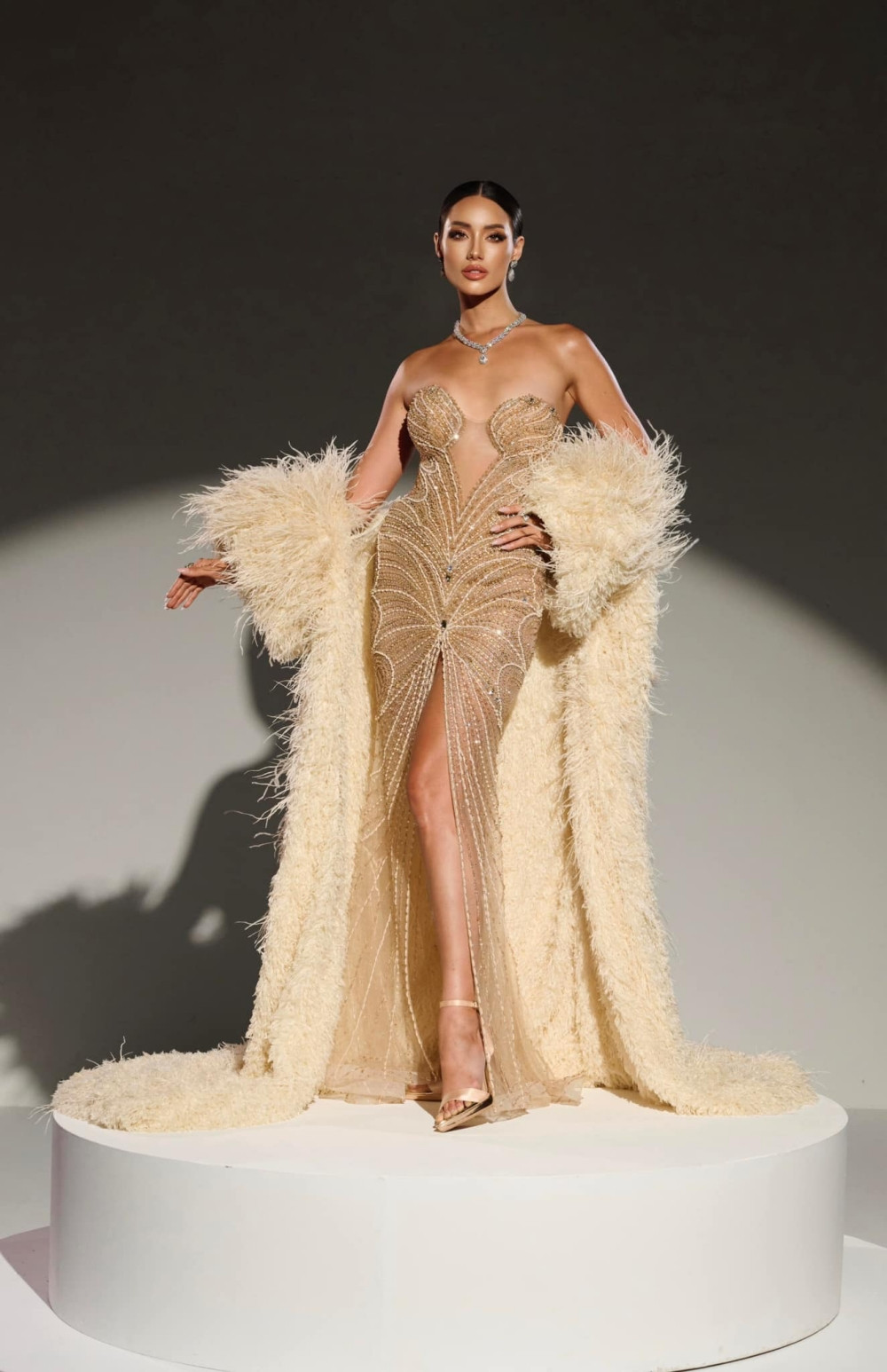 Hành trình đến với Miss Supranational 2024 của Lydie cũng như quá trình thoát kén và tung cánh bướm đến với sự thành công. Bởi thể, trong đêm thi Bán kết, Lydie sẽ diện thiết kế Butterfly gown của NTK Nguyễn Minh Tuấn, với những đường nét họa tiết được cách điệu từ cánh bướm uốn lượn đầy tinh tế. Kèm với đó, phần áo choàng lông toát lên vẻ sang trọng, nổi bật, cũng tượng trưng cho sự thoát kén, vươn mình về phía bầu trời rộng lớn hơn."