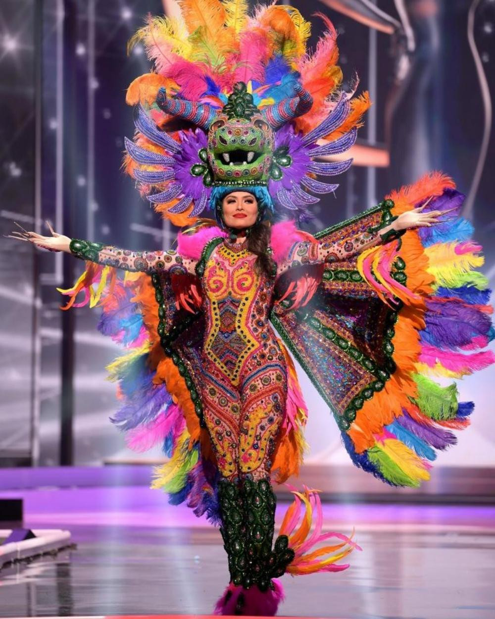 Hoa hậu Mexico Andrea Meza mang đến Miss Universe bộ trang phục lấy cảm hứng từ một làng nghề thủ công truyền thống của đất nước này có tên là Alebrijje, đây là kiểu đồ thủ công mang phong cách siêu thực được làm bằng bìa cứng, giấy hoặc gỗ. Bộ trang phục sặc sỡ mang đậm tinh thần Mexico.