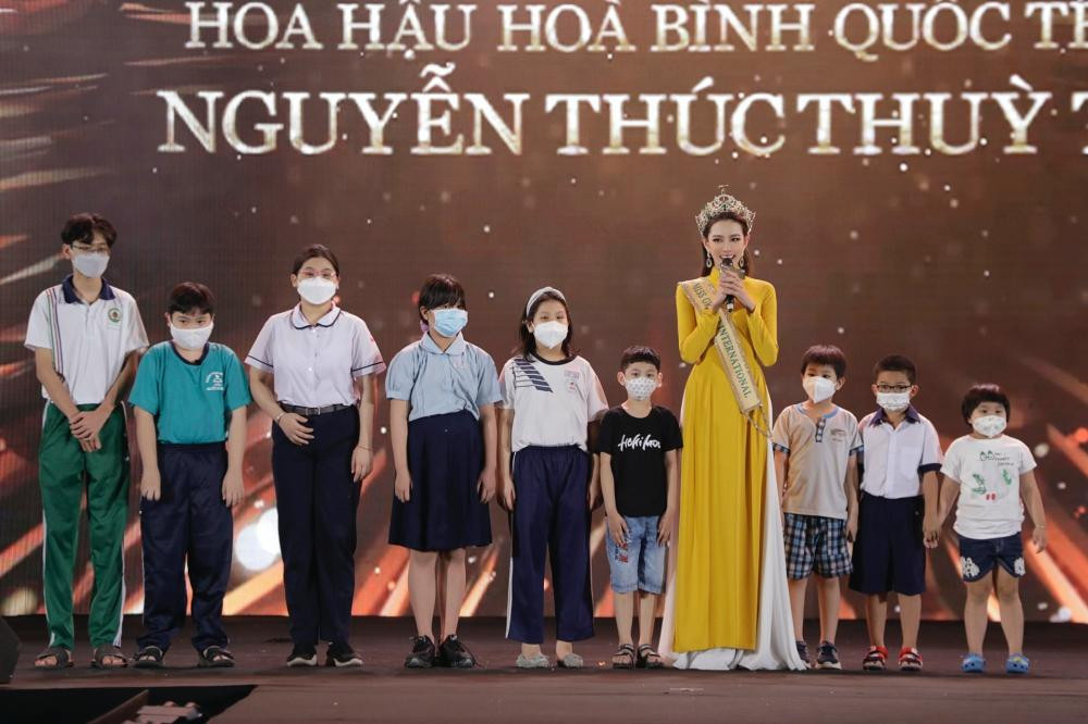 Đáng chú ý, mọi dự án thiện nguyện của nàng hậu trong thời gian sắp tới cũng được hé lộ ngay trên sân khấu. Trong đó gồm có: Bảo trợ 15 trẻ em mồ côi do COVID-19 đến năm 18 tuổi; trao tặng khu vui chơi cho xã Phạm Văn Cội, huyện Củ Chi; trao tặng 30 phần học bổng cho học sinh nghèo hiếu học và 53 phần quà cho bà con khó khăn tại xã Phạm Văn Cội, Củ Chi; trao tặng vốn phát triển kinh tế cho 20 phụ nữ TP.HCM khó khăn do COVID-19; trao tặng sân chơi cho điểm trường Hồ Nhì, tỉnh Cao Bằng.