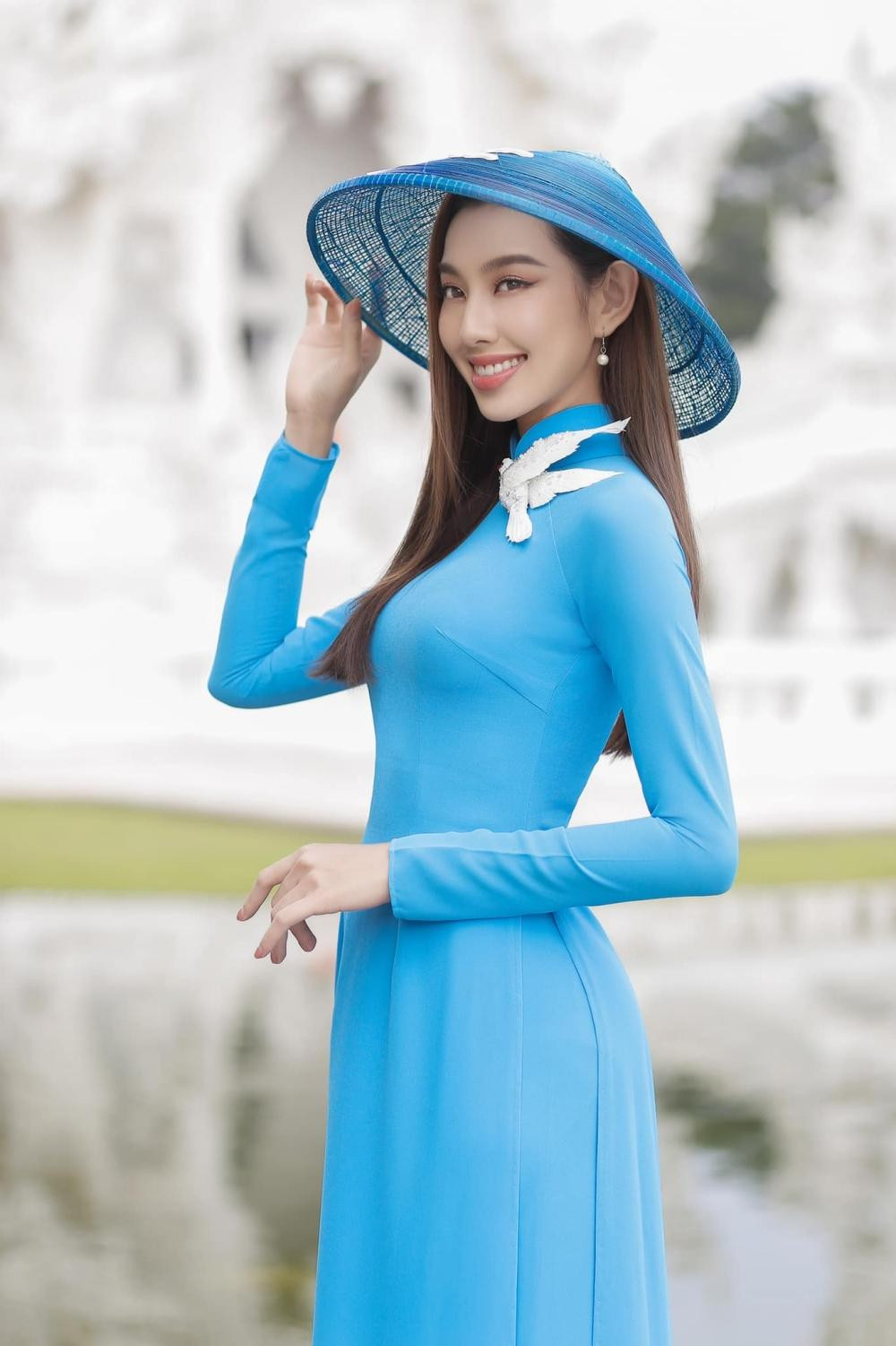 Bộ áo dài mang ý nghĩa rất đáng tự hào, thiết kế có màu xanh hi vọng và được gắn thêm chú chim bồ câu trắng, loài chim tượng trưng cho sự hòa bình. Hoa hậu Thuỳ Tiên mong rằng mọi người có thể hiểu được đây là một cách vừa truyền tải thông điệp hòa bình tới công chúng, vừa có thể quảng bá được bản sắc dân tộc mình.