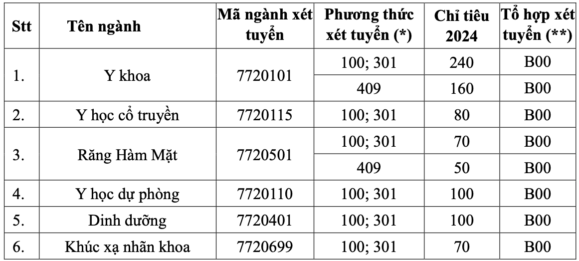 | Chỉ tiêu tuyển sinh của Trường Đại học Y Hà Nội năm 2024. |