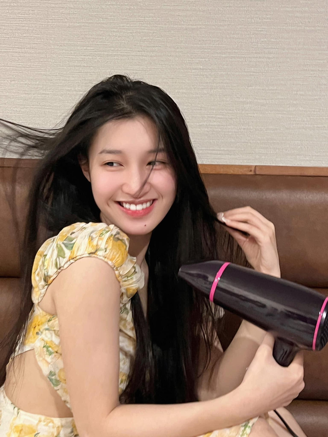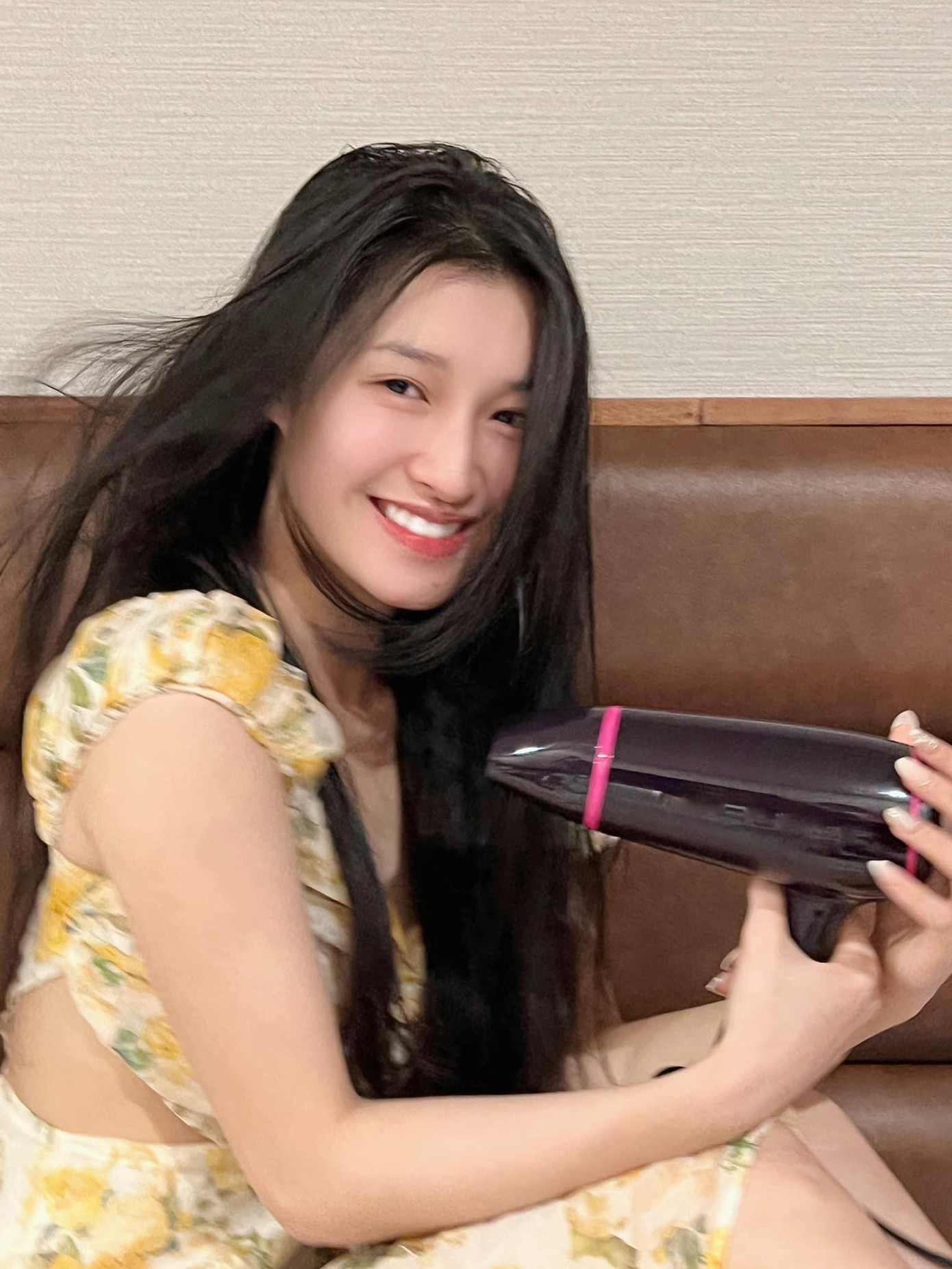 Và không chỉ xinh đẹp khi diện váy áo lộng lẫy, trang điểm kỹ lưỡng mà Phương Nhi phiên bản mặt mộc lại càng thu hút hơn nữa. Khoảnh khắc nàng Á hậu sấy tóc khoe gương mặt mộc không trang điểm đã khiến cư dân mạng xao xuyến vì quá đỗi dịu dàng.