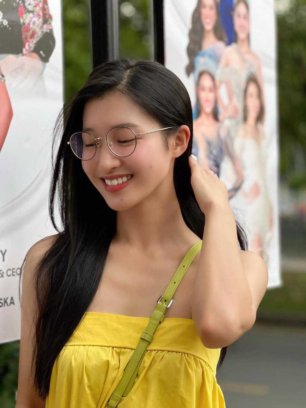Không hổ danh là thí sinh có làn da đẹp nhất cuộc thi Hoa hậu Thế giới Việt Nam, Phương Nhi ở bức ảnh nào cũng sáng bừng với làn da trắng mịn màng, đôi mắt cười lấp lánh và những cử chỉ thân thiện, ấm áp.