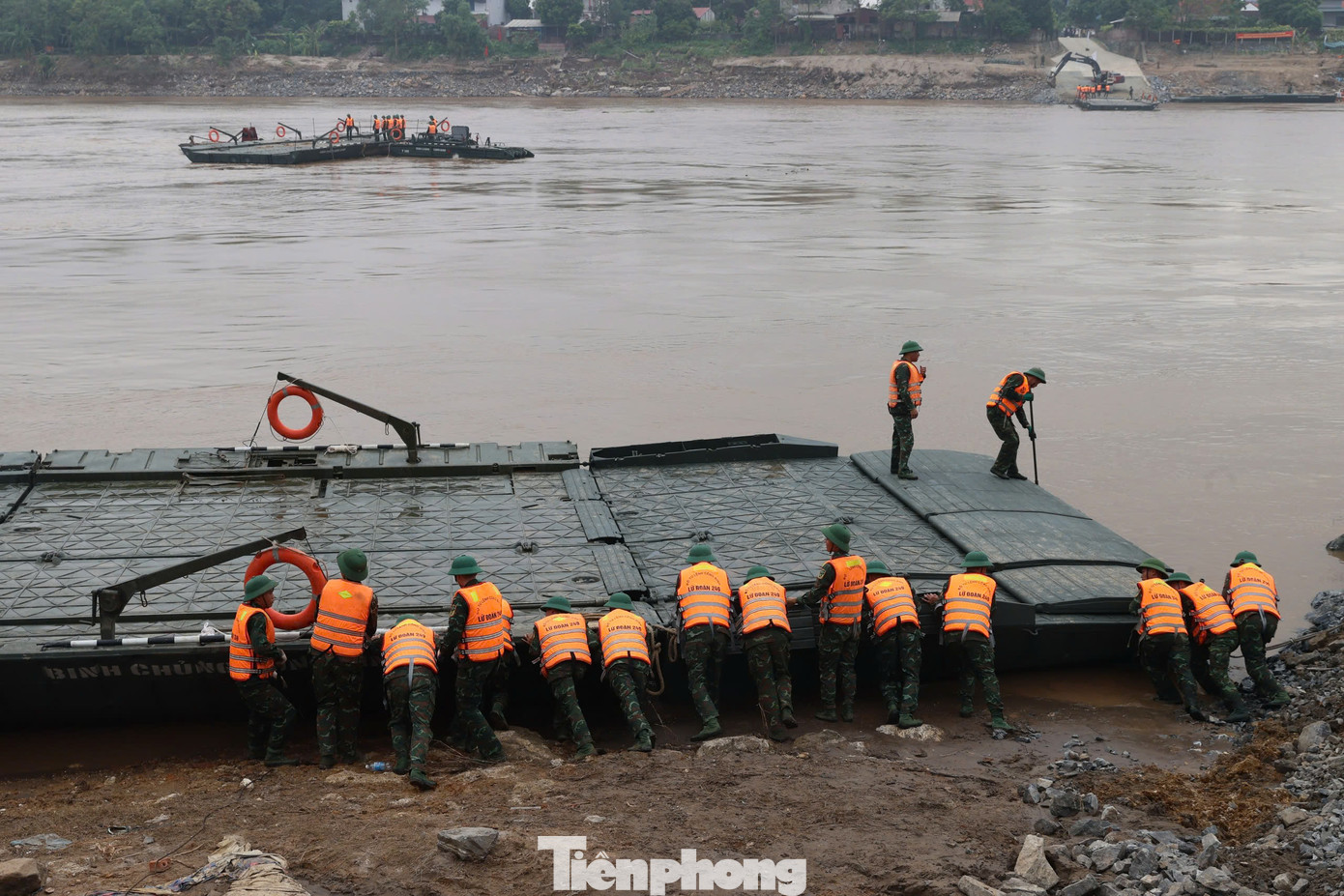 TPO - Ngày 29/9, Lữ đoàn 249 (Binh chủng Công binh) đã hoàn thành việc bắc cầu phao nối hai bên bờ sông Hồng thuộc huyện Tam Nông và Lâm Thao (tỉnh Phú Thọ). Vị trí cầu ở phía hạ lưu, cách
