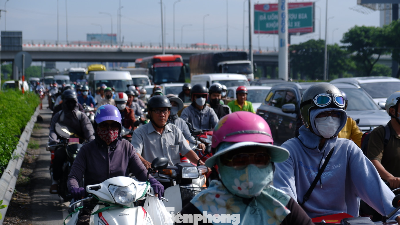 | Dòng phương tiện nối đuôi đổ về các tỉnh, thành miền Tây Nam bộ. |