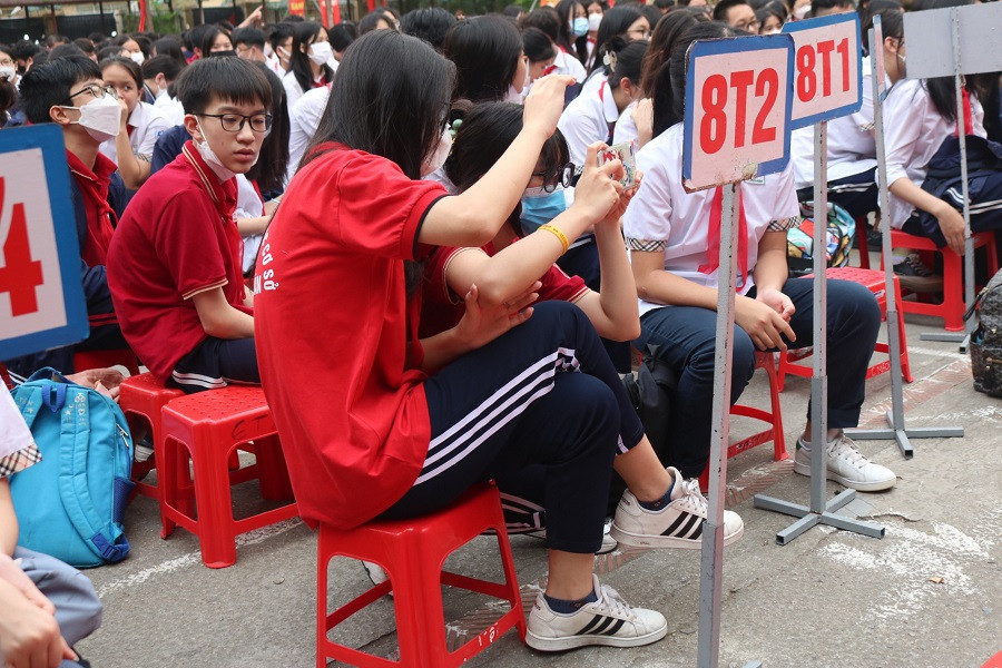 Ở khu vực khán đài, chú ý lắng nghe về thông điệp và những câu chuyện được các bạn giới thiệu qua từng đầu sách, tween cũng không quên "tác nghiệp" để lưu lại màn thuyết trình của cô bạn/ cậu bạn thân.