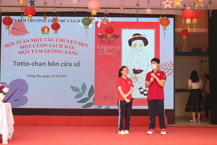 Cũng trong khuôn khổ Ngày hội đọc sách, buổi sáng tween được nghe các bạn học sinh khối lớp 8 giới thiệu 4 tác phẩm: Totto Chan bên cửa sổ (lớp 8T2), Bố con cá gai (lớp 8T1), Tắt đèn (lớp 8T3) và Học cách hoàn thiện bản thân (8V1).