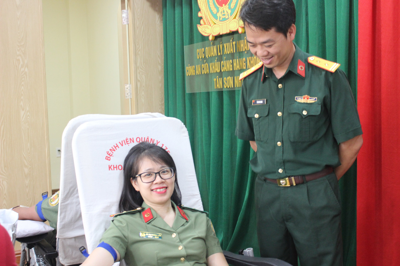 Nữ Thượng úy Nguyễn Thanh Thủy, với lần thứ ba tham gia hiến máu, phấn khởi bày tỏ: “Mình cũng mong chờ đến ngày để được hiến máu. Trước đây, khi lần đầu hiến máu, mình còn lo lắng nhưng bây giờ thì đã quen rồi". Chị Thủy hiện cũng đang là “tuyên truyền viên” tích cực, vận động người thân, bạn bè trong các chương trình tham gia hiến máu tình nguyện.