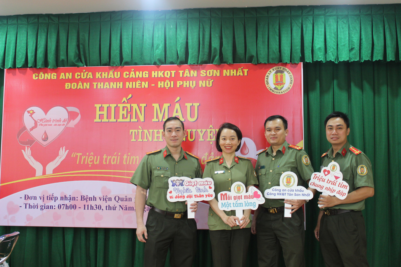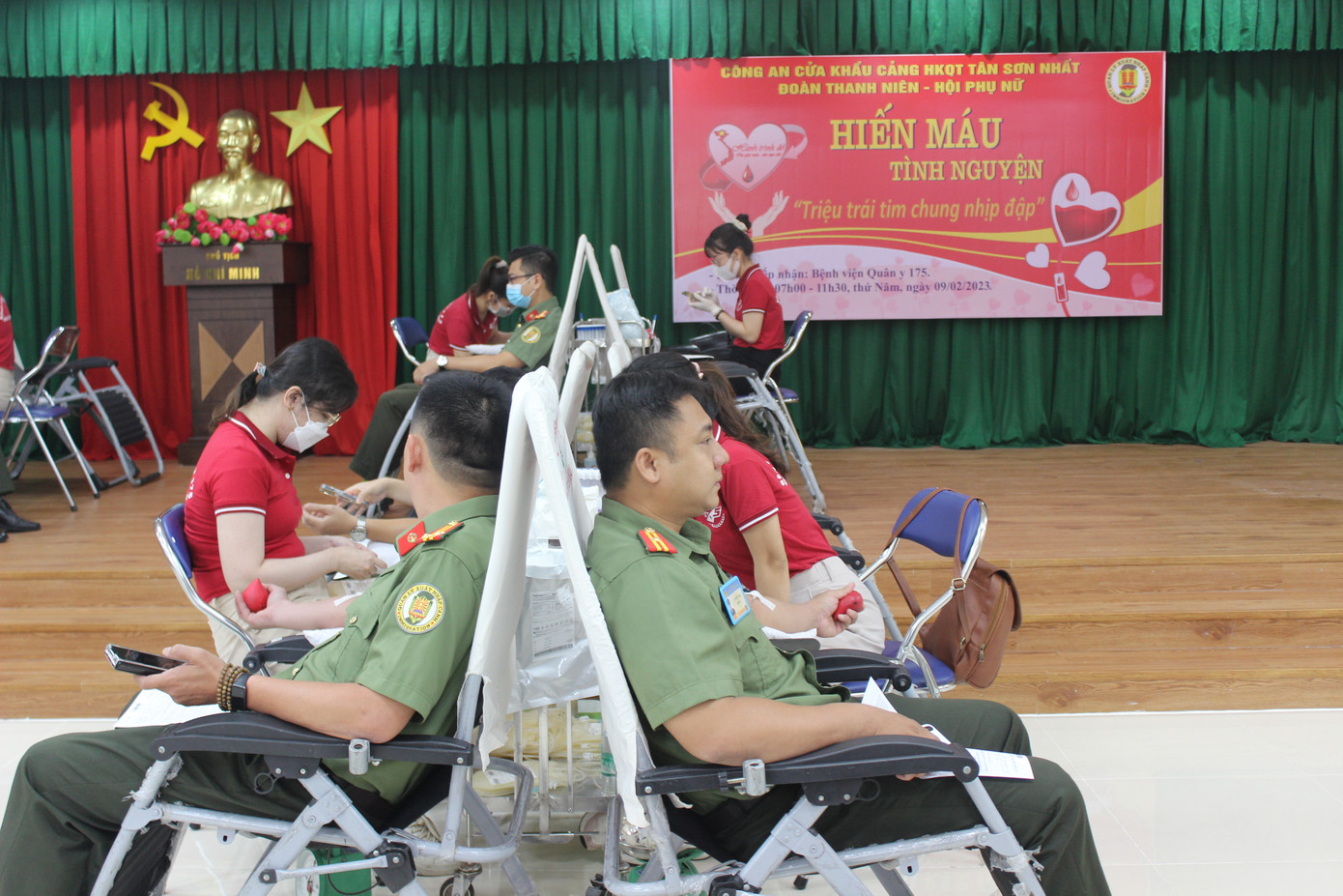 Nhiều đoàn viên, các bộ, công nhân viên Công an cửa khẩu Cảng hàng không quốc tế Tân Sơn Nhất đã có mặt từ sớm để tham gia chương trình hiến máu. Anh Nguyễn Quốc Vương – Bí thư Đoàn Thanh niên Công an cửa khẩu Cảng hàng không quốc tế Tân Sơn Nhất cho biết, đây là hoạt động tình nguyện được tổ chức định kỳ hằng năm nhằm phát huy sức trẻ và tinh thần chung tay vì cộng đồng của đoàn viên cơ quan. “Hoạt động càng ý nghĩa hơn khi là nằm trong chuỗi các chương trình hiến máu 'Chủ nhật Đỏ' trên toàn quốc năm 2023. Ngoài các đoàn viên đang trong ca trực nhiệm vụ, số còn lại các đoàn viên đủ điều kiện sức khỏe đều đăng ký tham gia hiến máu”, anh Vương chia sẻ.